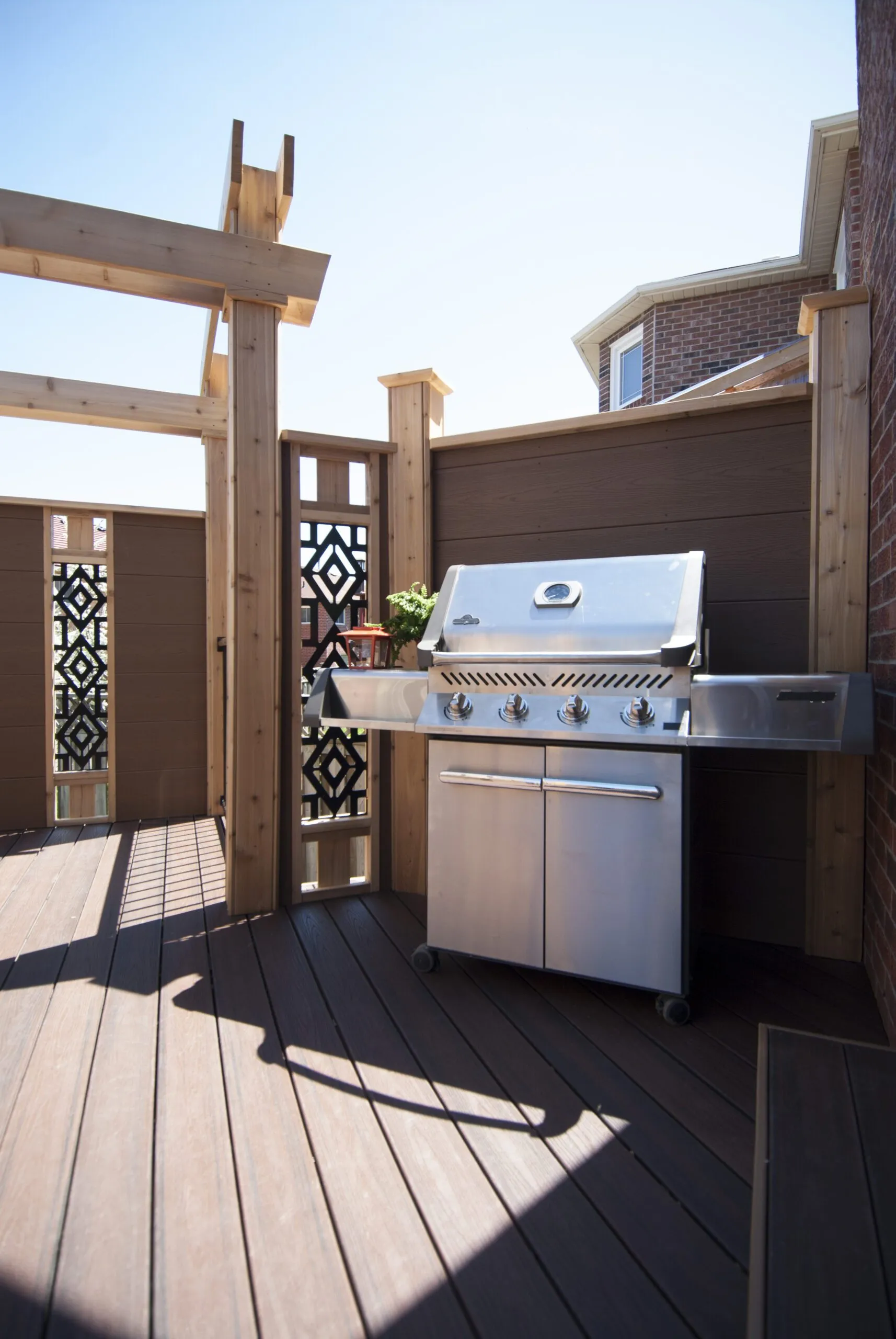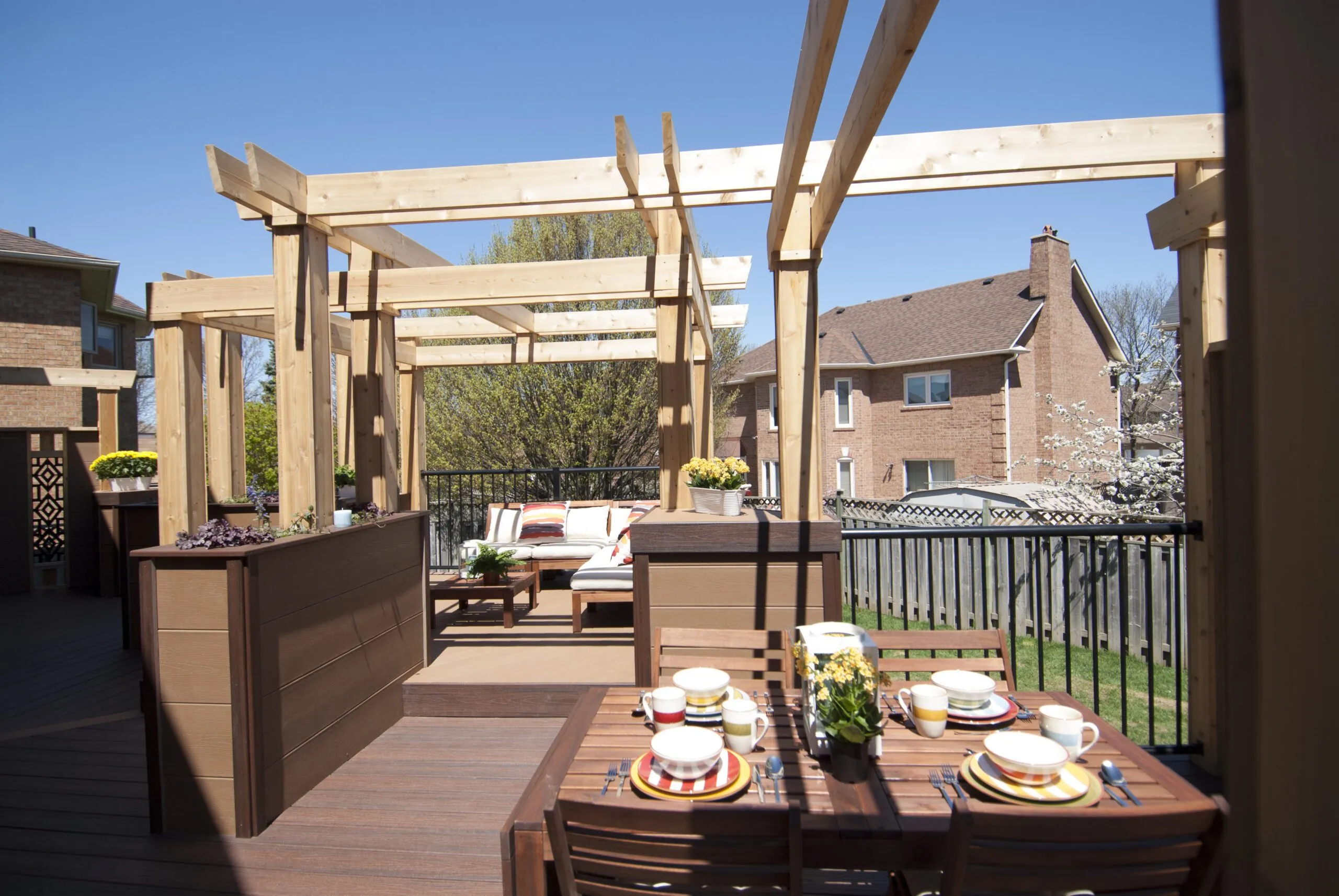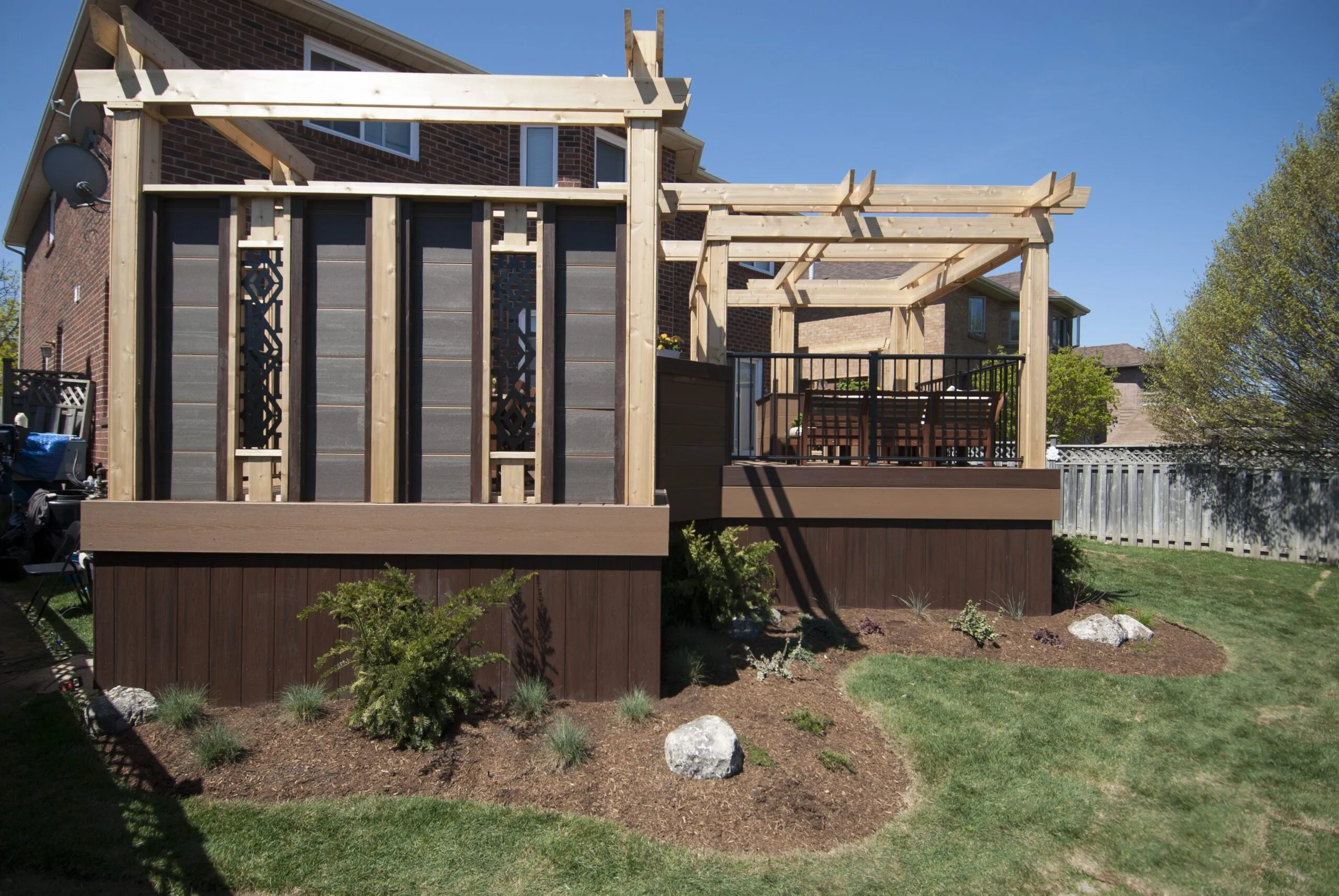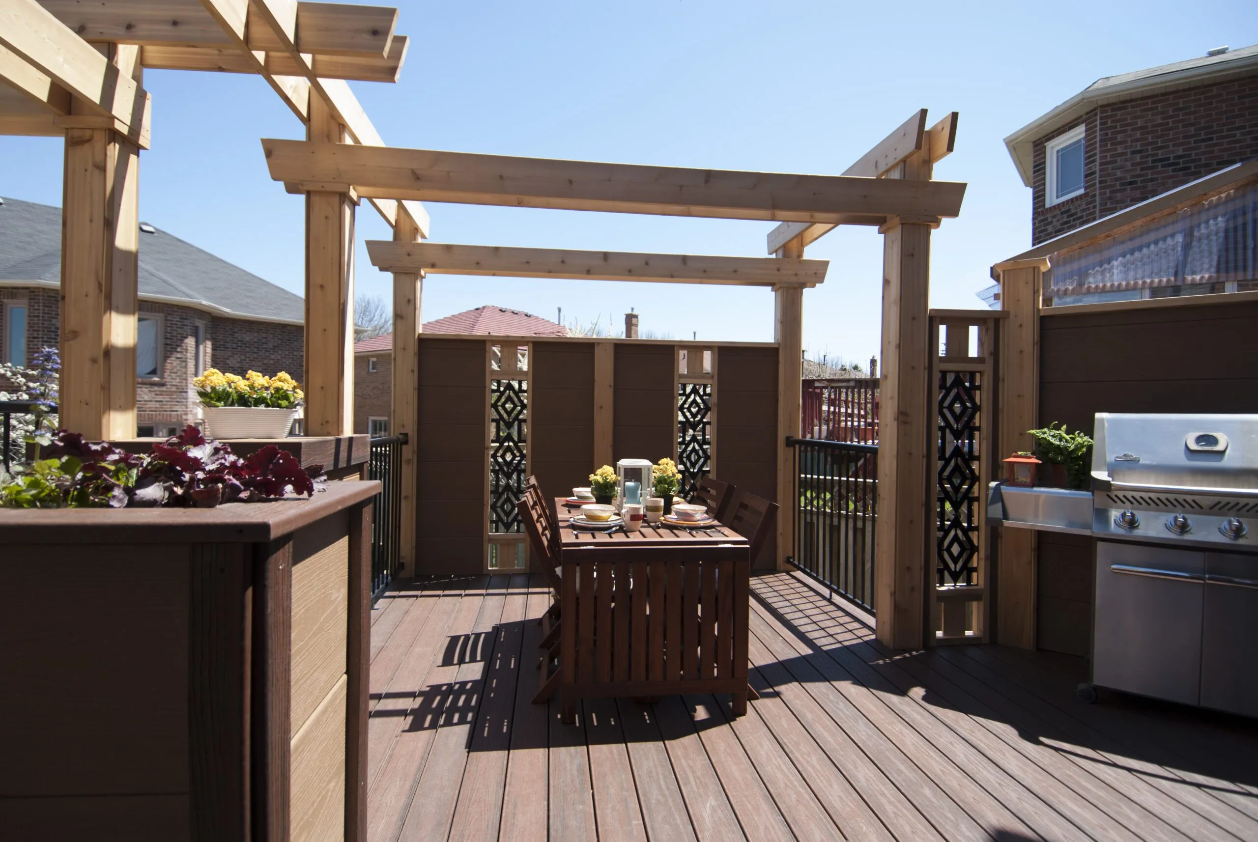 When we set out to design The Cedar Beams Deck, we wanted to make a bold architectural statement that still felt grounded and organic. The exposed cedar beam structure not only frames the space with character but also gives the deck a sense of permanence and craftsmanship. We layered in multiple zones—from the dining area to the cozy seating section—making it easy to flow between dinner with friends and quiet morning coffee. The natural tones of the wood are matched with privacy screens and subtle detailing that ensure the space feels both open and intimate. This is a deck that doesn’t just support outdoor living—it defines it.