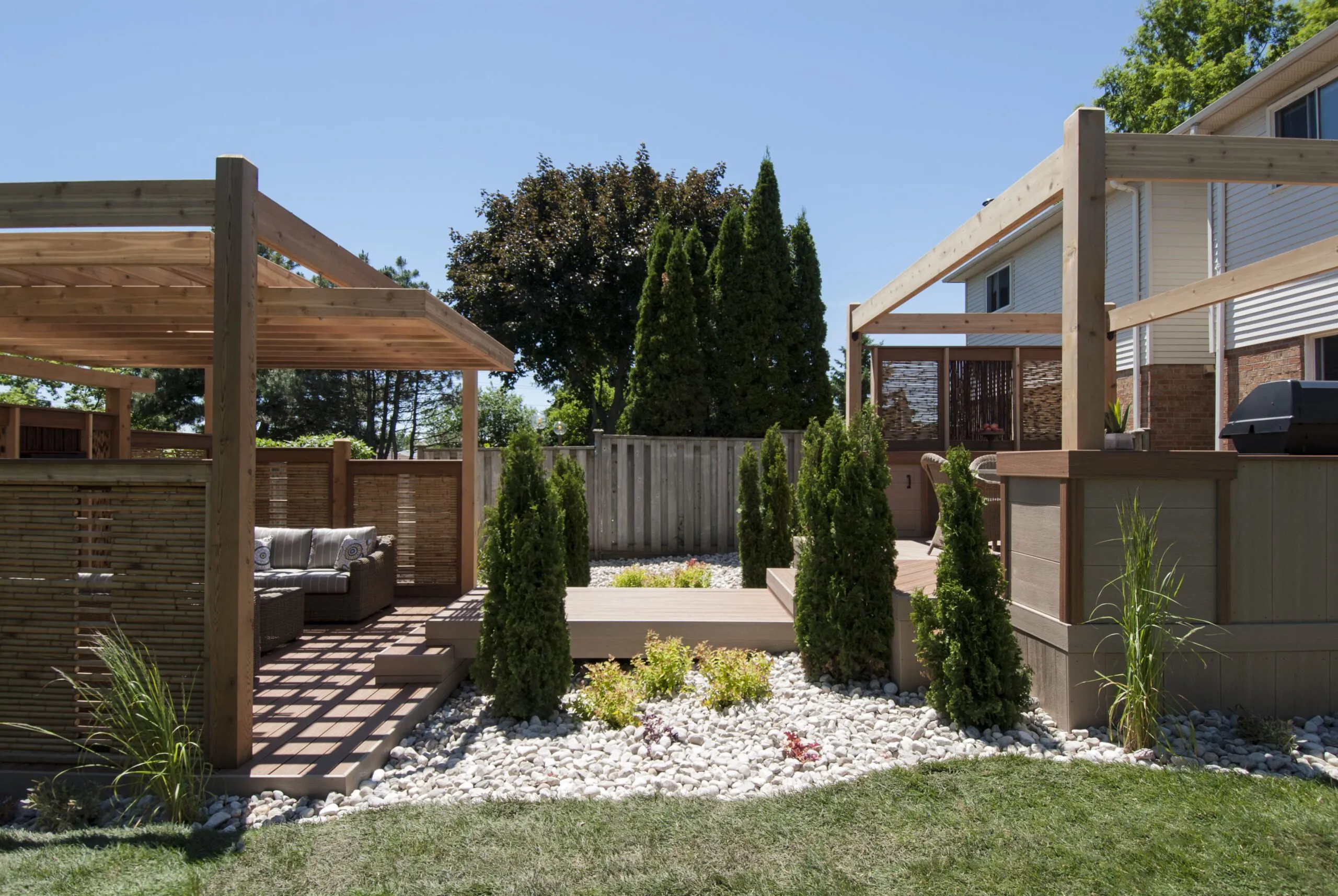 When we designed this deck, we weren’t just thinking about structure—we were thinking about stillness. The Descent Into Downtime Deck lives up to its name, easing you gently into a space that invites you to slow down. Step by step, the levels guide you from the everyday rush into something softer, quieter, more grounded. From the sculptural privacy screens to the tucked-away seating nooks, every detail was chosen to promote calm without sacrificing connection. Whether it’s a morning coffee spot or a twilight dinner under the pergola, this is a space that recharges you. It’s not flashy. It’s intentional—and that makes all the difference.