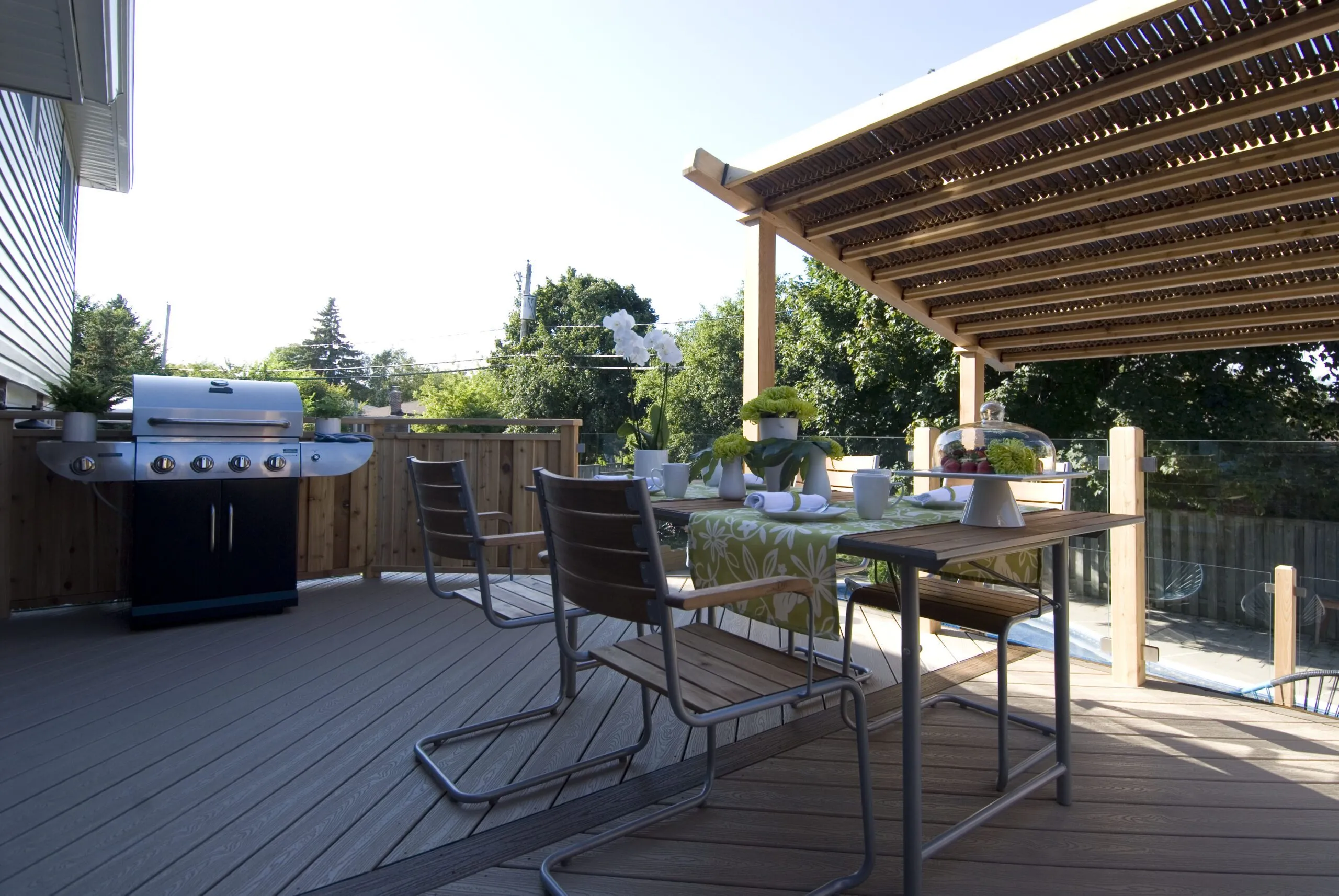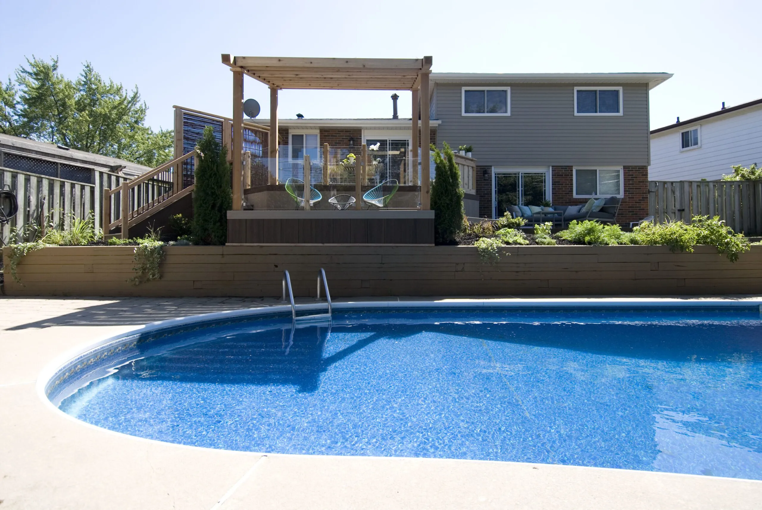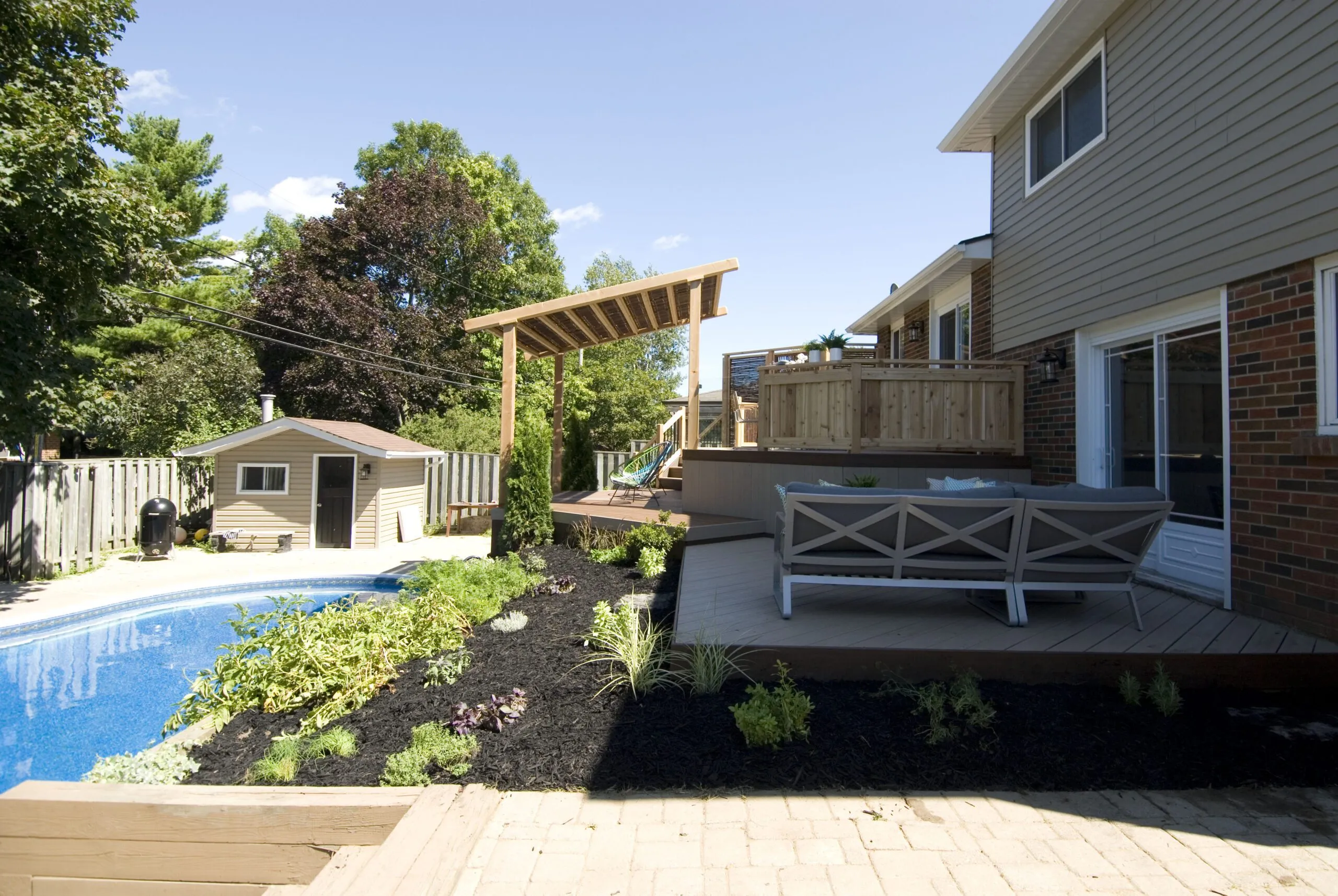 For this project, we set out to create a backyard deck that could keep up with a fearless homeowner who wanted it all—style, comfort, and serious function. With the pool as the centrepiece, we layered the space vertically using a series of steps and platforms to naturally separate lounging, cooking, and spa zones without losing that open-concept feeling. We incorporated a sleek pergola with angled beams to create shade over the main seating area, then added built-in privacy panels and landscaping for added seclusion without sacrificing airiness. The integrated hot tub deck and sun loungers make this space equally perfect for energetic gatherings or slow mornings by the water. This deck became more than just a place to hang out—it’s now the go-to zone for family life, summer parties, and peaceful escapes alike. We’re proud of how it balances bold design with everyday livability.