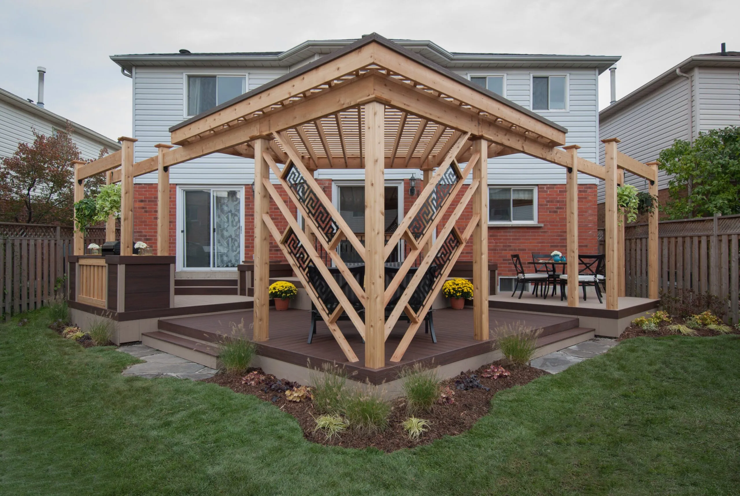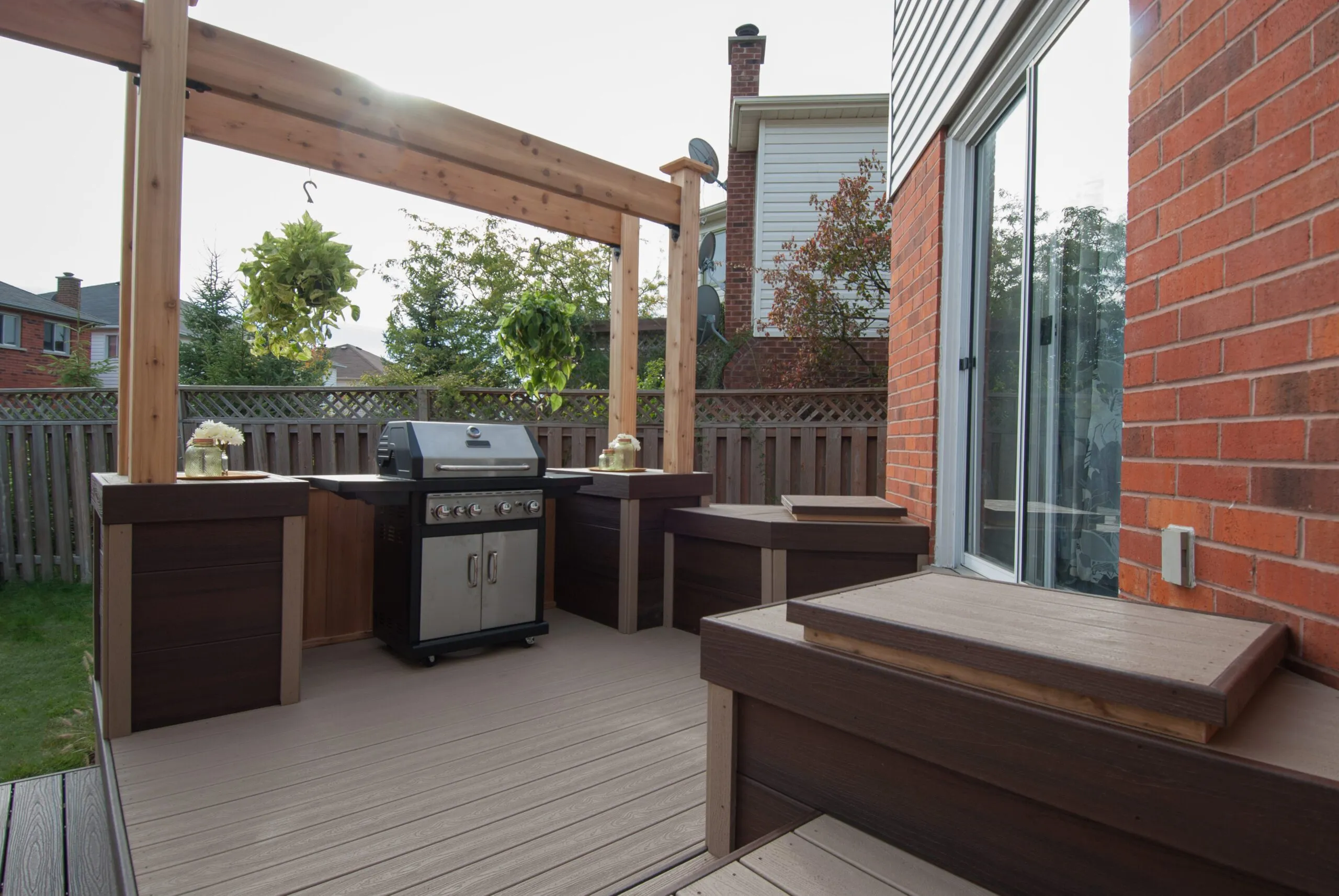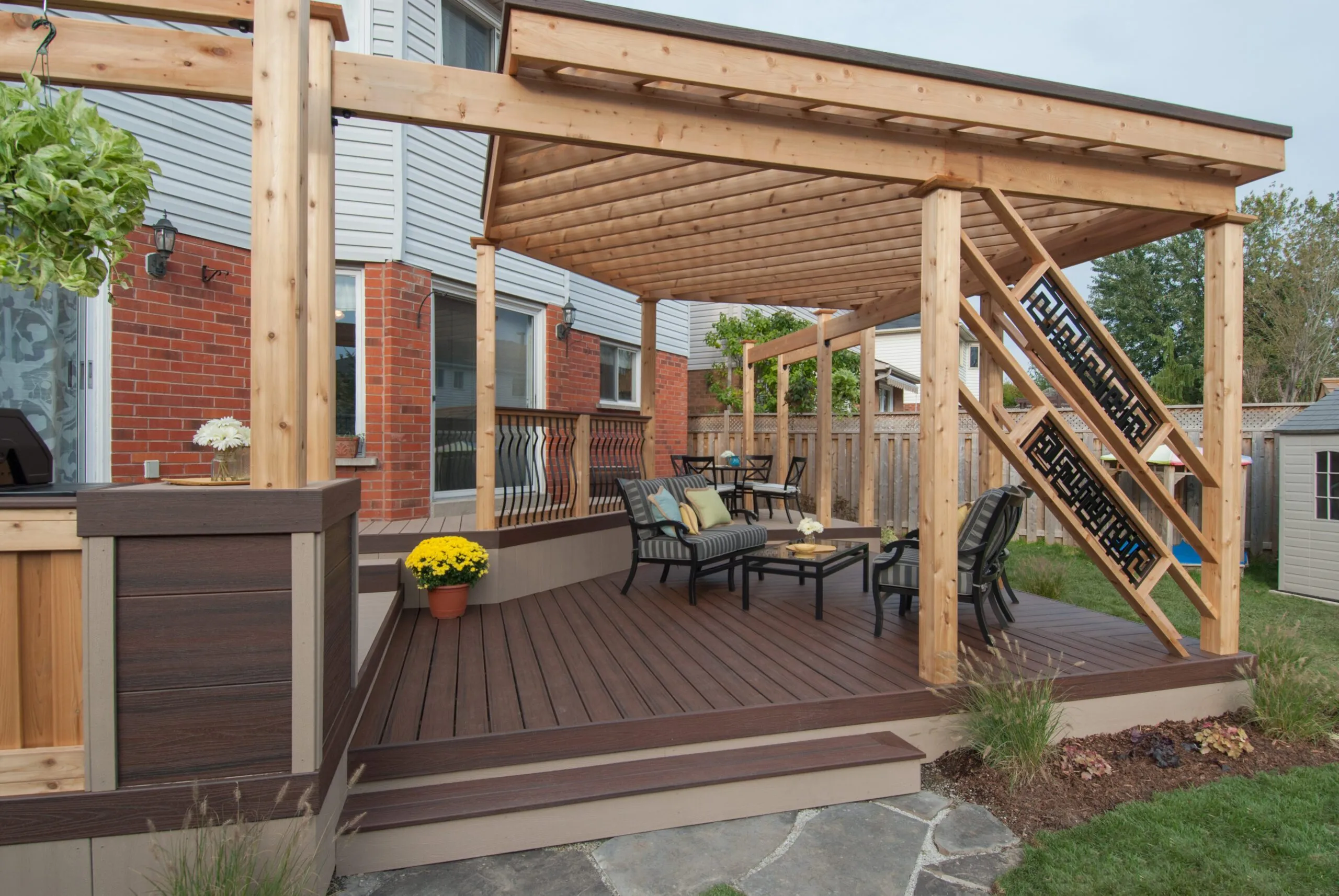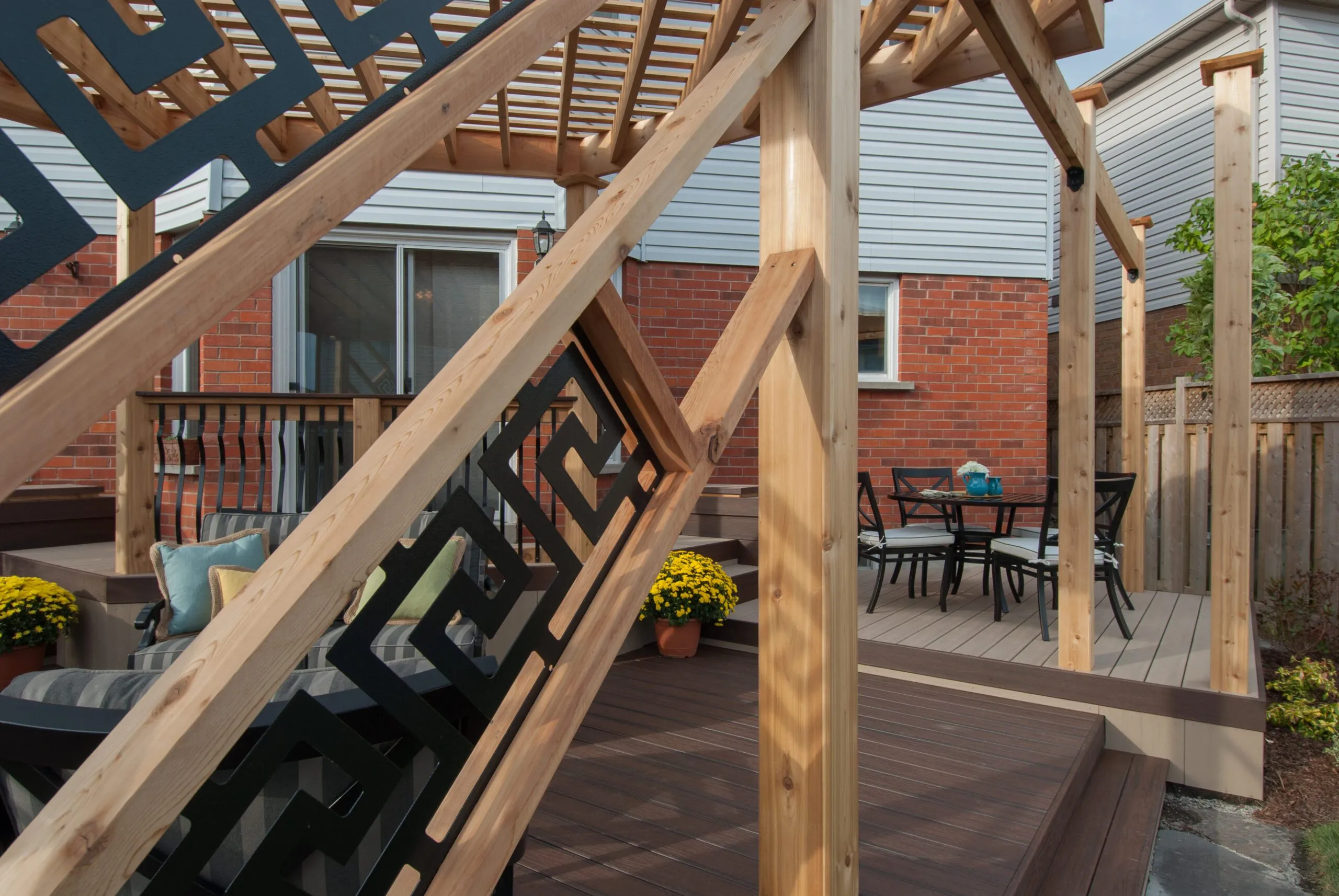The Focal Point Deck is designed to draw the eye—and keep it there. Centered around a dramatic pergola structure with geometric framing, this deck makes a lasting impression before you even set foot on it. From clean lines to balanced proportions, every detail is engineered to create symmetry, elegance, and architectural presence. Ideal for backyards that need a strong design anchor, this deck offers the perfect blend of form and function. Whether hosting outdoor dinners or relaxing in the shade, the space is as practical as it is iconic. It’s a true conversation starter crafted by the Paul Lafrance Design team.