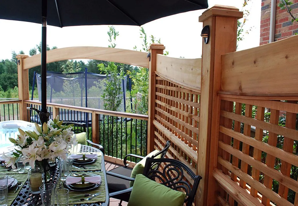 The Hot Tub Deck is proof that even a small backyard can deliver big impact. Our team designed this custom deck to wrap around an elevated hot tub, creating a private spa-like zone without losing space for entertaining or relaxing. A mix of natural wood and thoughtful sightlines makes the tub feel like a destination, while integrated steps and railings ensure safety and flow. This is a stellar example of how we turn tight spaces into hot tub-ready decks in Ontario—ideal for both winter dips and summer lounging. We added built-in seating and a dining area to complete the outdoor living experience with form and function.