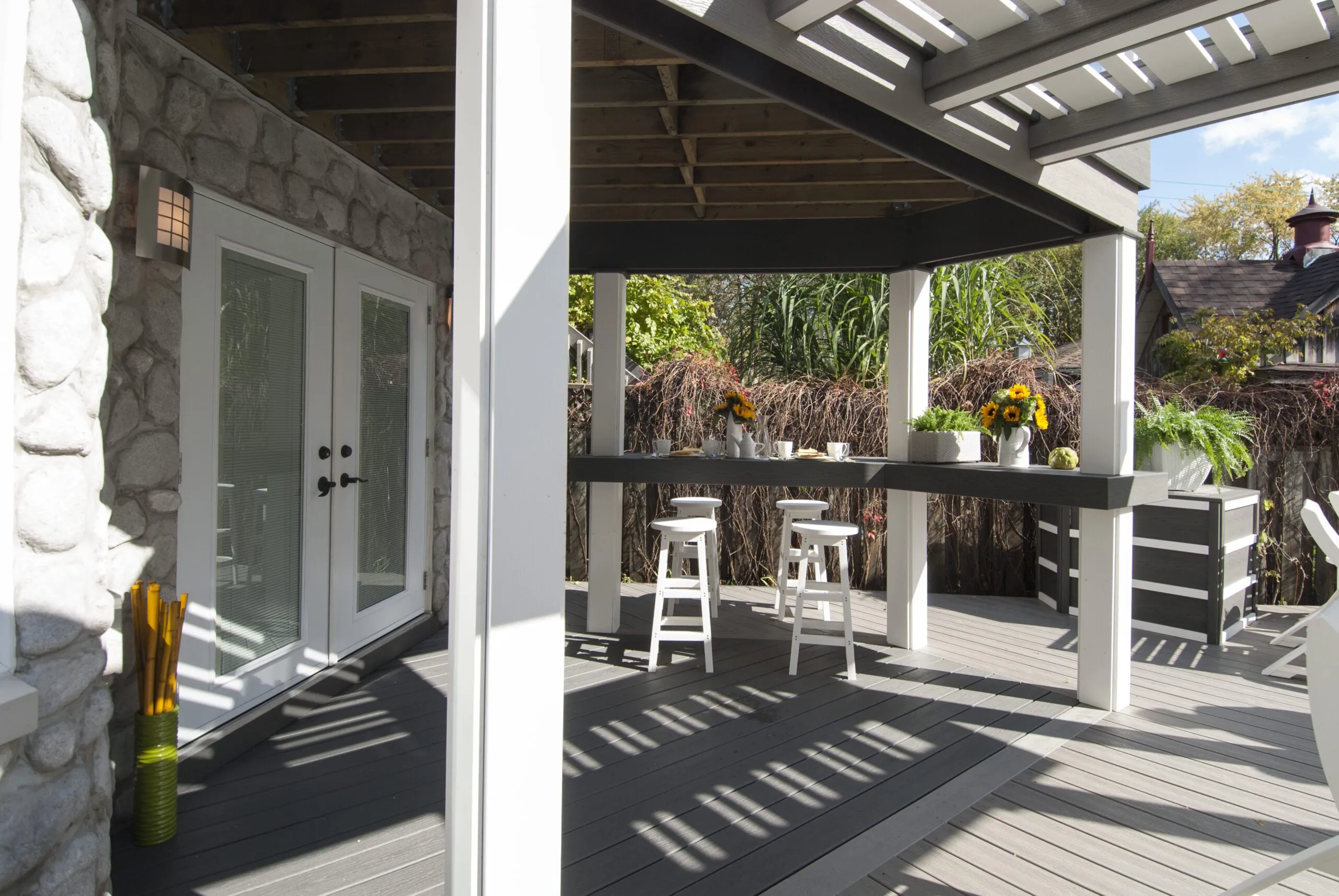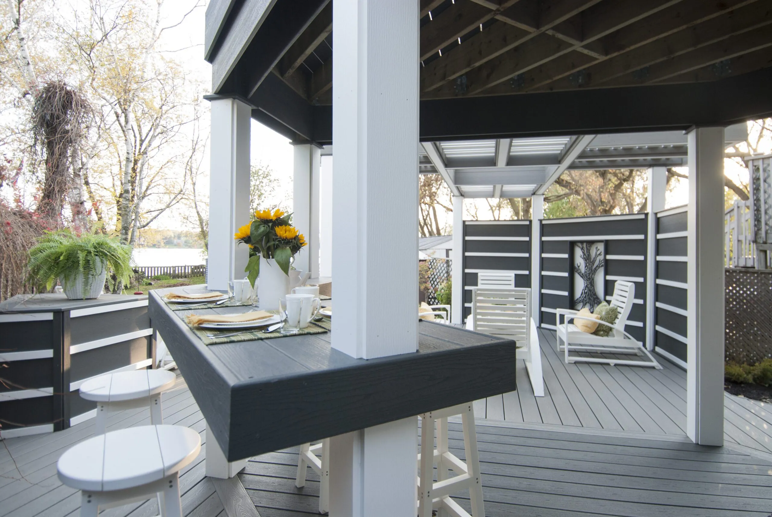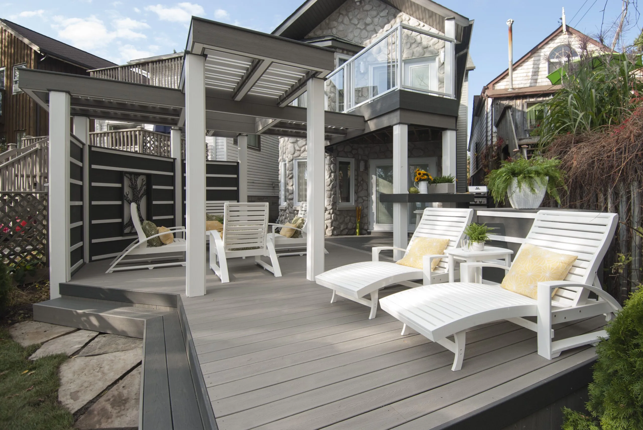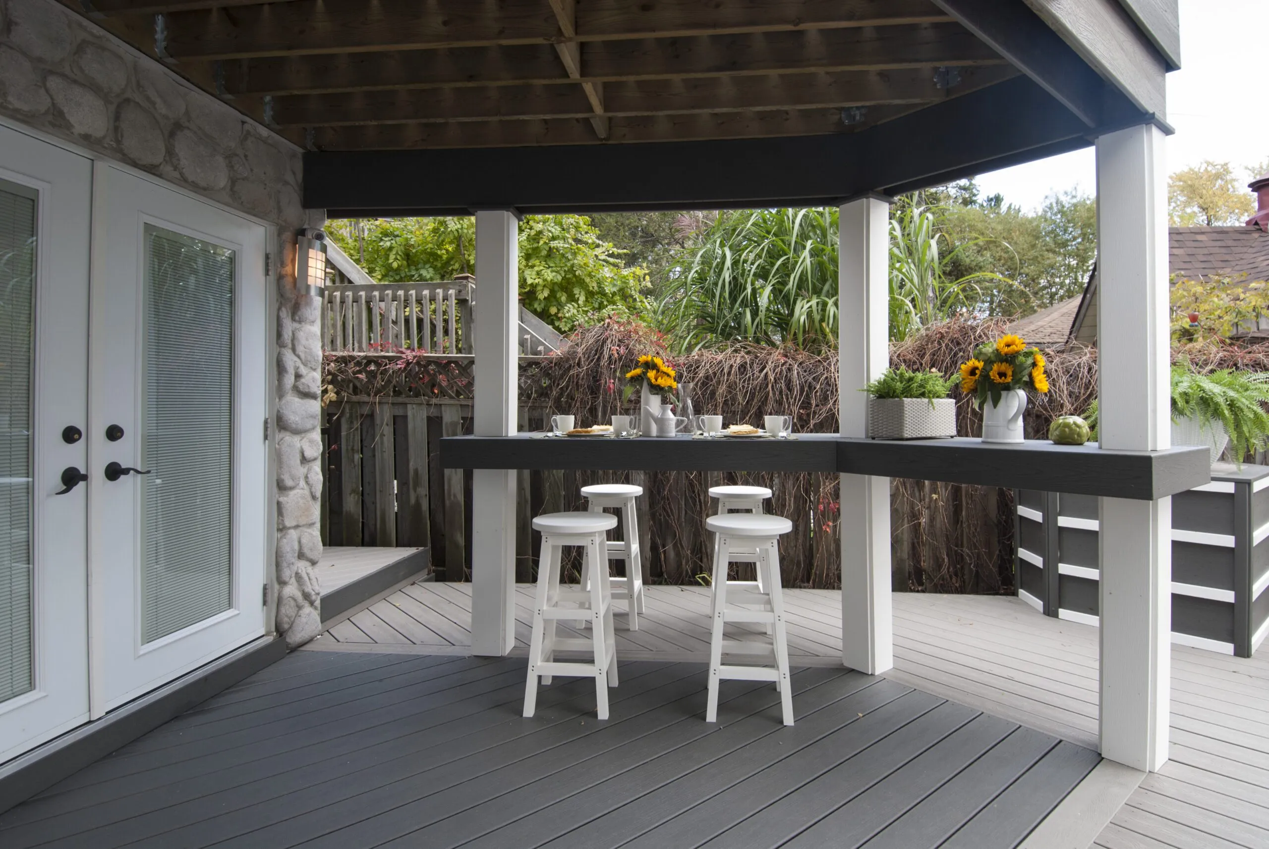 Designed for musician Jeremy Taggart, this deck hits all the right notes—combining clean architectural lines, high-contrast materials, and versatile covered spaces. From intimate morning coffees to entertaining friends in style, the layout is all about livable luxury. The integrated roof structure provides year-round protection without sacrificing natural light, thanks to open framing and modern finishes. Thoughtful zoning creates distinct areas for lounging, dining, and conversation. Whether you're performing or just kicking back, The Jeremy Taggart Deck is a masterclass in personal outdoor style.