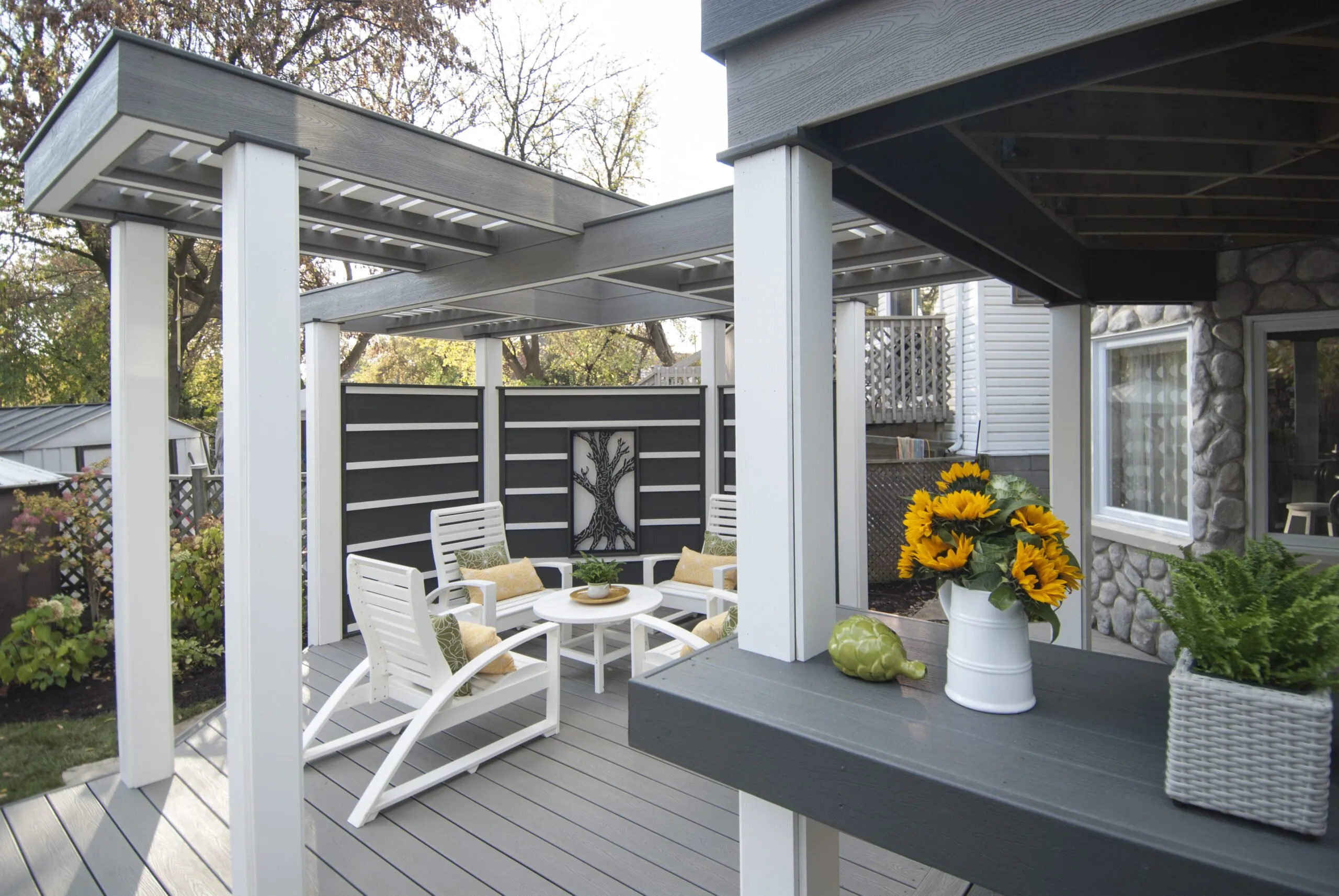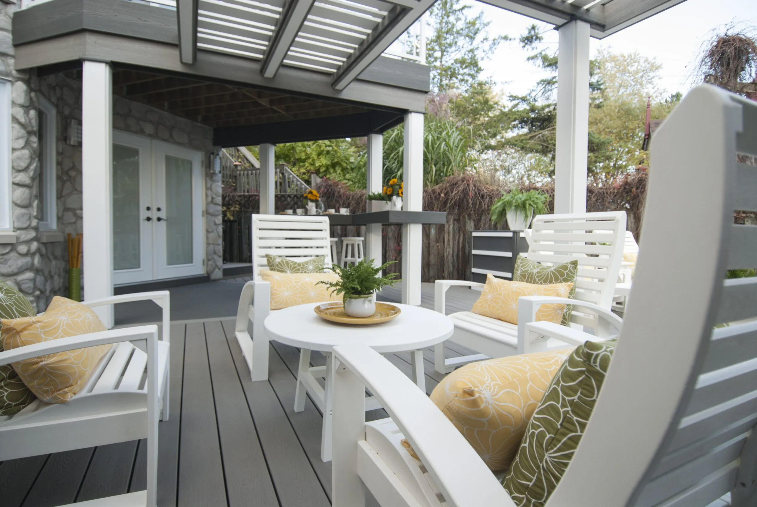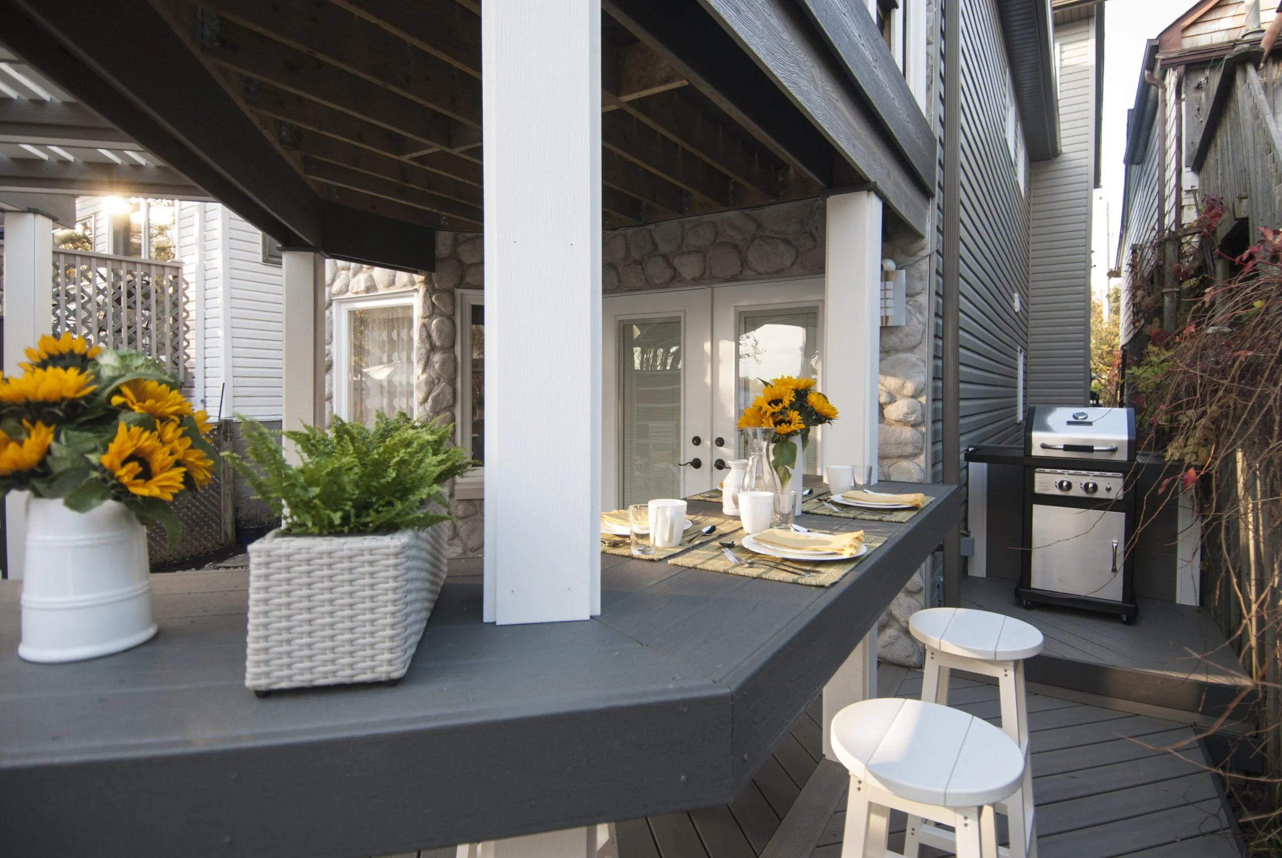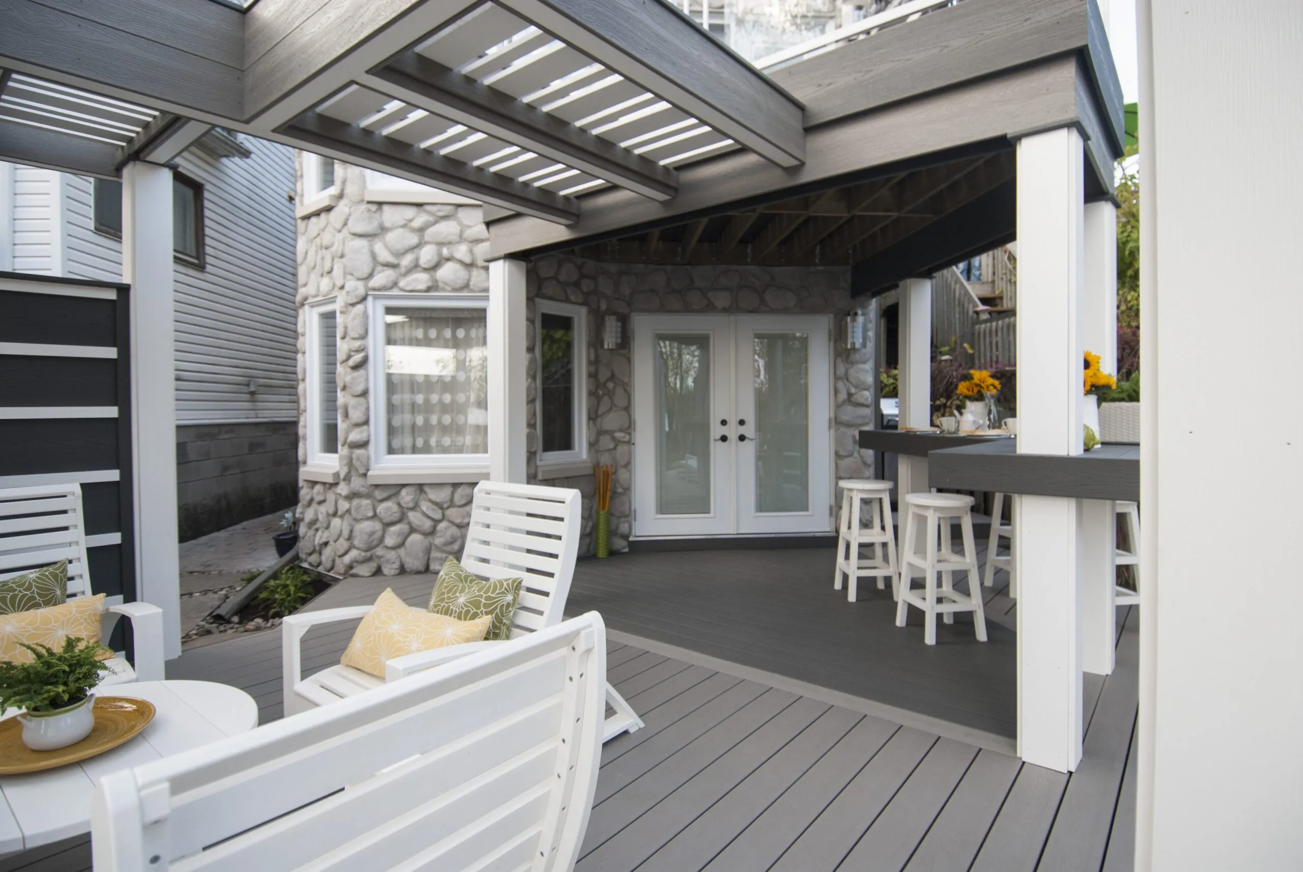 Designed for musician Jeremy Taggart, this deck hits all the right notes—combining clean architectural lines, high-contrast materials, and versatile covered spaces. From intimate morning coffees to entertaining friends in style, the layout is all about livable luxury. The integrated roof structure provides year-round protection without sacrificing natural light, thanks to open framing and modern finishes. Thoughtful zoning creates distinct areas for lounging, dining, and conversation. Whether you're performing or just kicking back, The Jeremy Taggart Deck is a masterclass in personal outdoor style.
