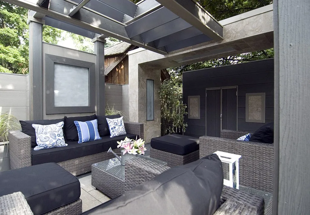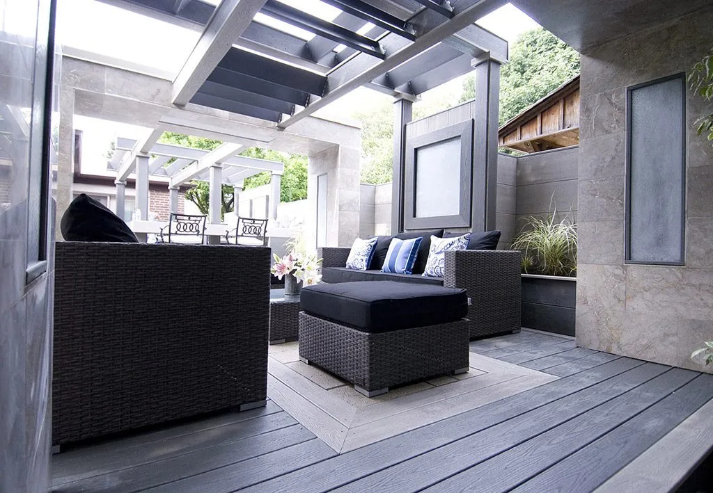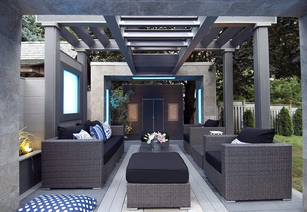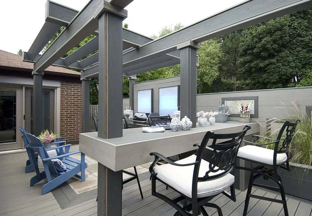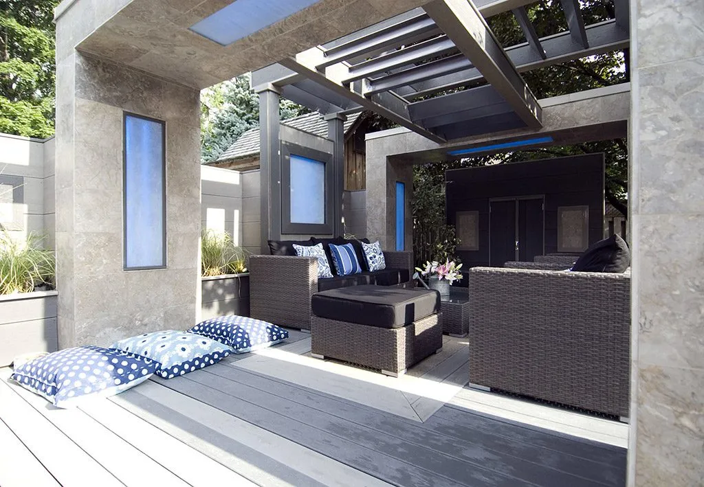 The Long Lounge Deck was all about extending the livable footprint of the home without compromising design. By running the deck the entire width of the backyard, we created a spacious, unified outdoor area that feels like a natural continuation of the home’s interior. A motorized louvered pergola adds dynamic control over light and shade—open for sunshine, closed for shelter—making it ideal for everything from summer brunches to rainy-day reading. Built-in lighting keeps the space usable well into the evening, while clean-lined furniture and neutral tones keep the atmosphere feeling calm and curated. This modern outdoor deck design maximizes every inch of usable space while offering comfort, utility, and style in equal measure.