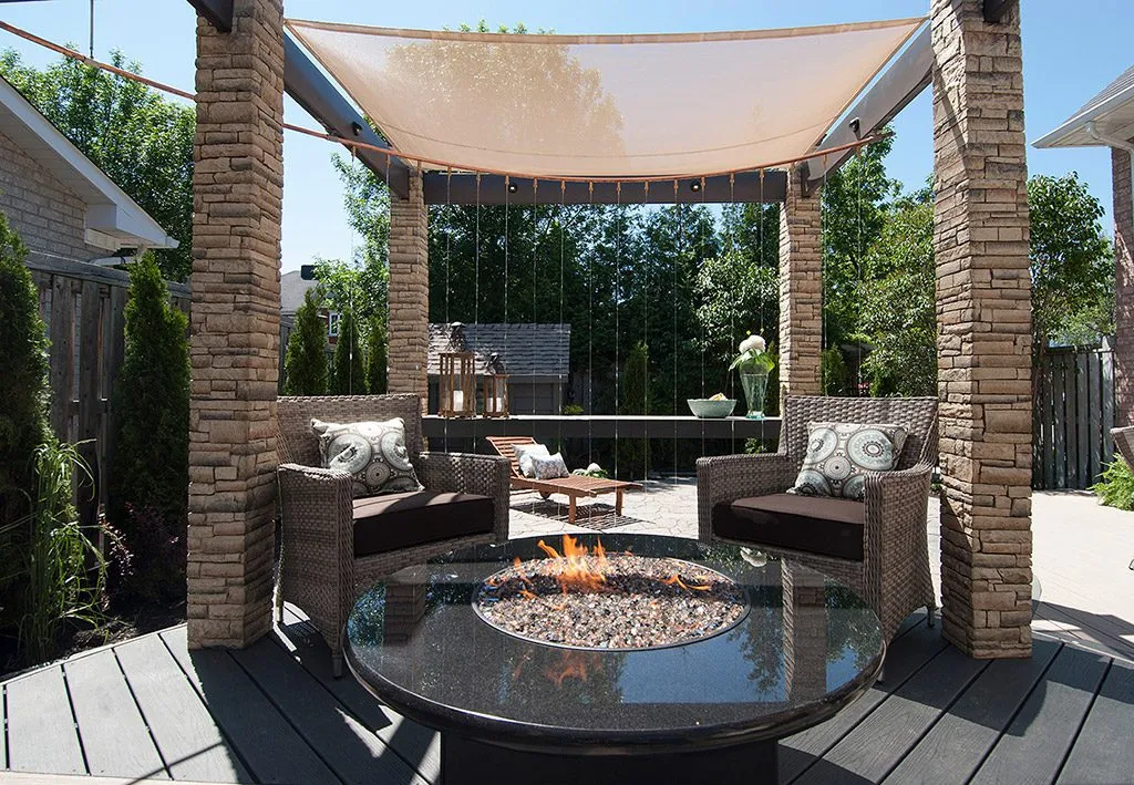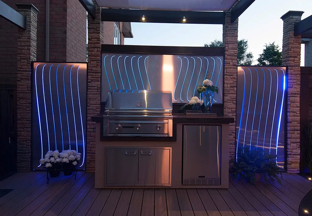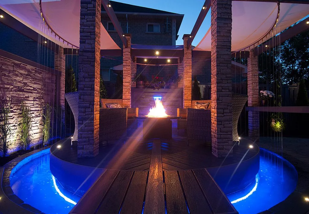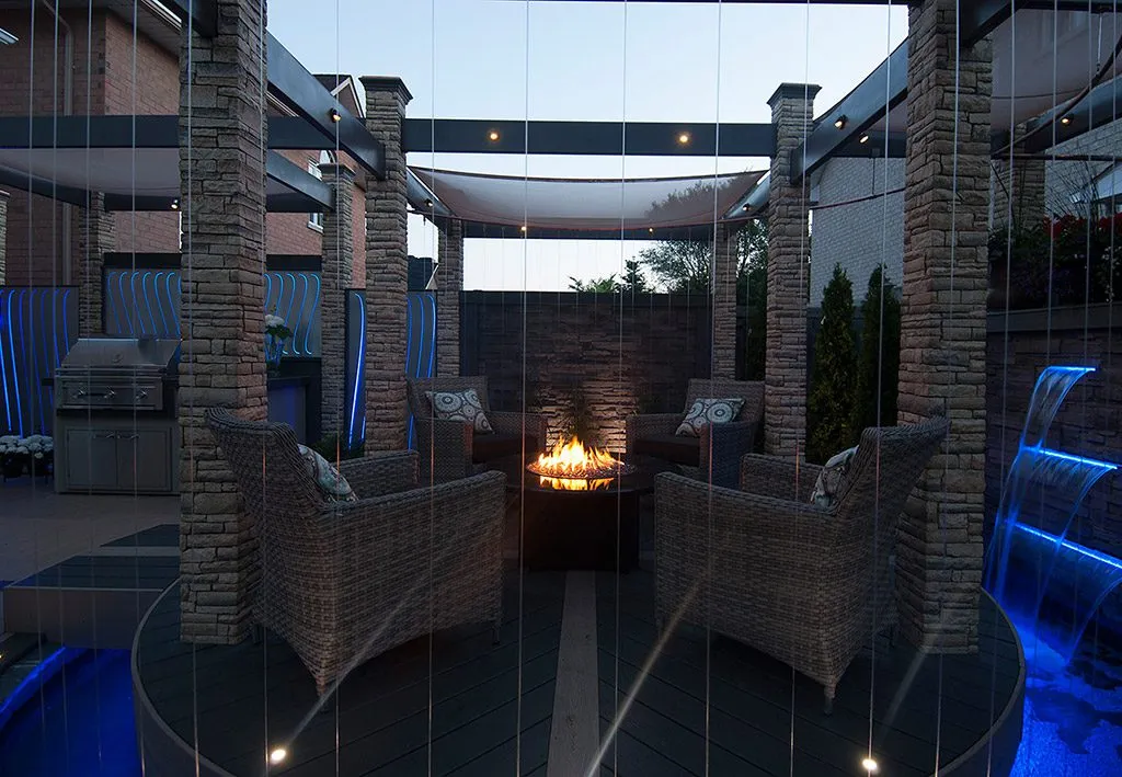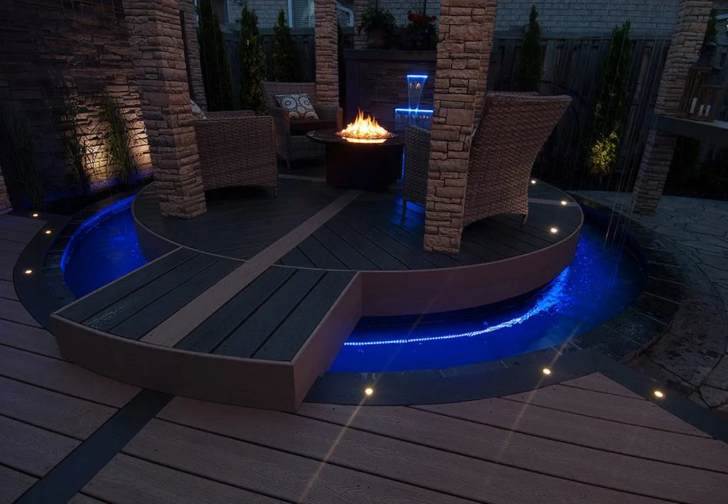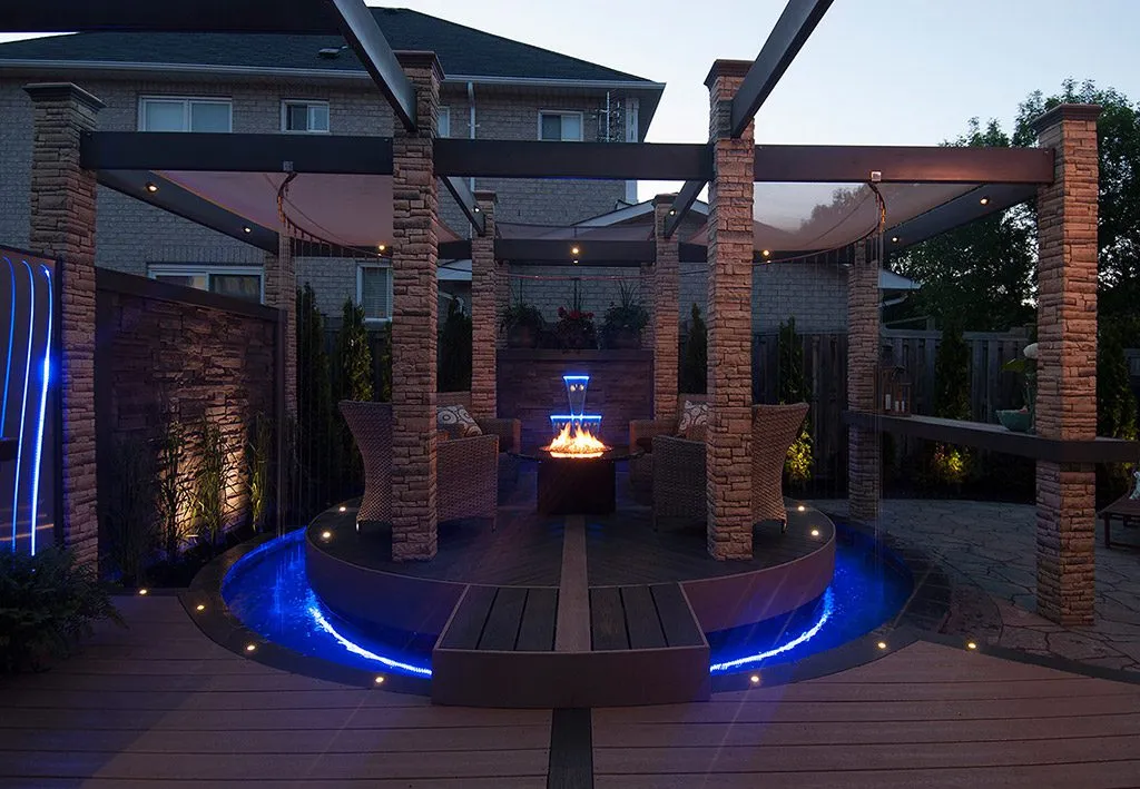 At The Moat Deck, we’ve designed a space that blends natural elements with modern luxury. The central feature is the raised perimeter, which creates a moat-like effect, allowing water to flow gently around the space, accompanied by lighting that sets a calm, atmospheric tone. This is more than just a deck; it’s a sanctuary for relaxation, where the soothing sounds of water and the soft glow of lights create a truly peaceful environment. We’ve incorporated plush seating areas and an inviting fire pit, making this an ideal place for both intimate gatherings and large events. Whether you’re enjoying a quiet evening by the fire or hosting friends for a celebration, this deck offers the perfect combination of beauty, function, and comfort. We take pride in designing spaces that elevate your lifestyle, and The Moat Deck is a testament to that vision.