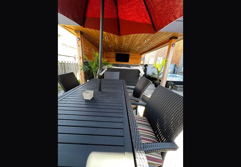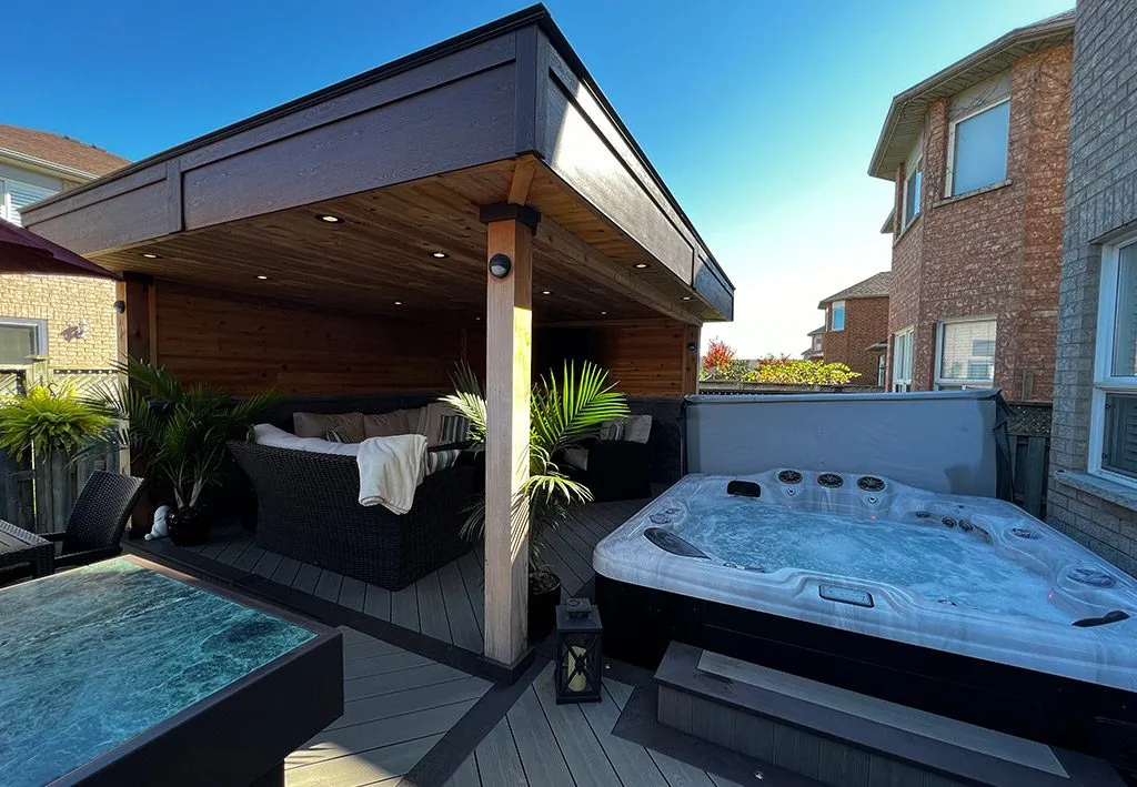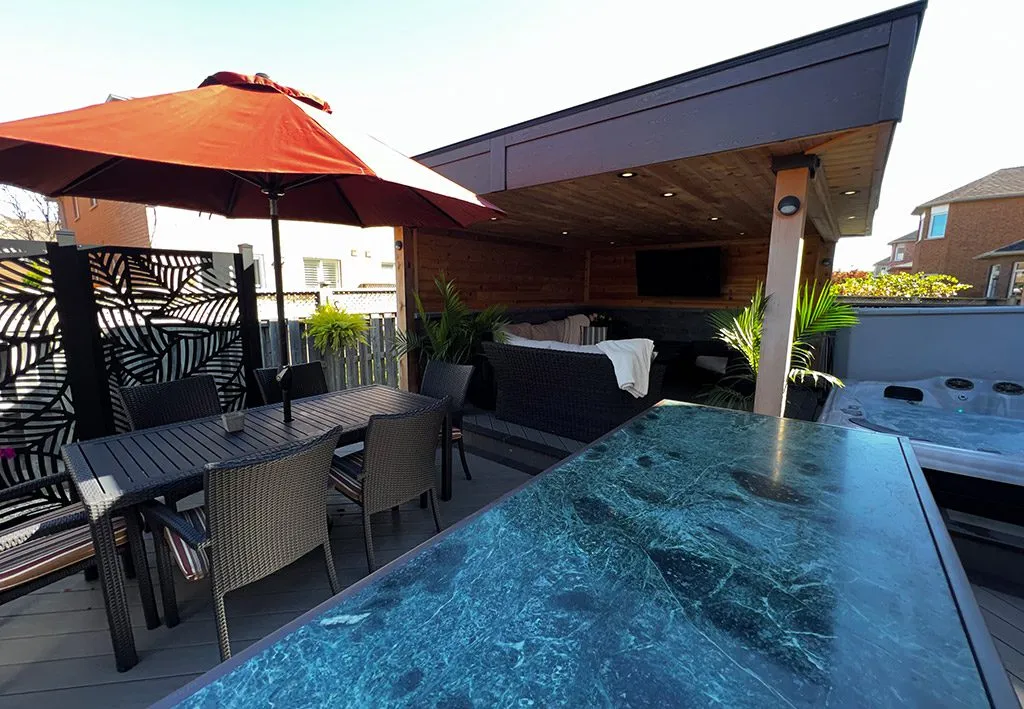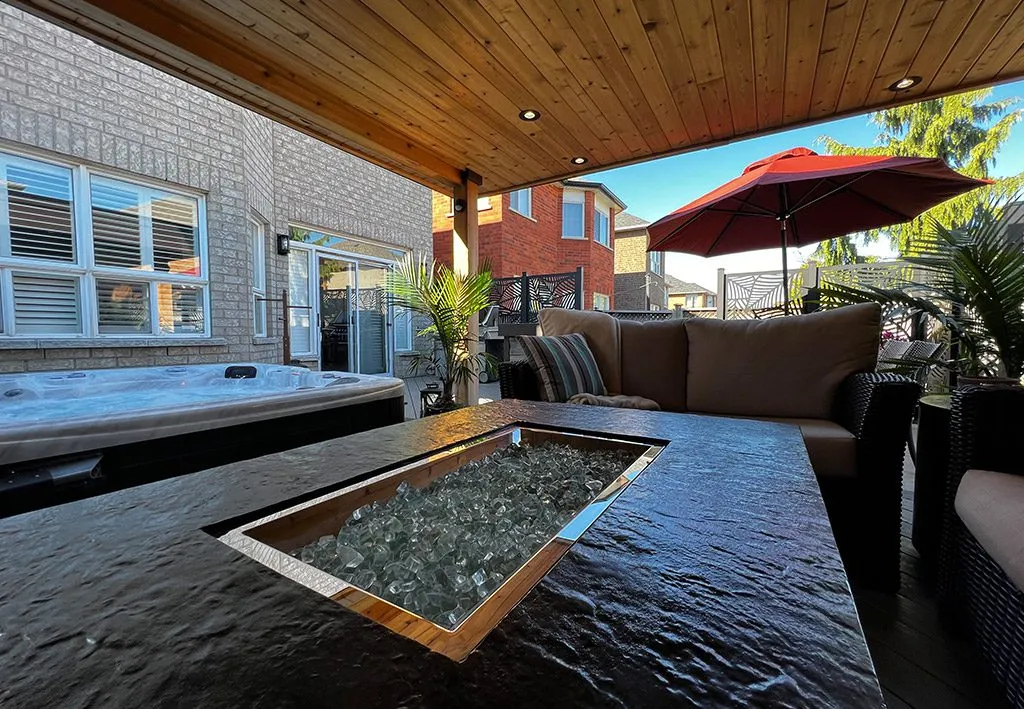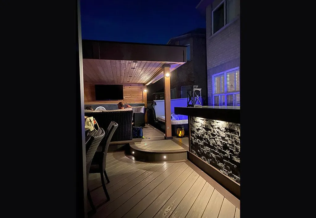 When we designed The Outdoor Room Deck, we wanted to give the homeowners something more than a traditional deck—we wanted to give them a true outdoor living space they could use like an extension of their home. We started by creating a strong architectural ceiling structure that defines the room while offering protection from the elements. This allowed us to add recessed lighting and a layered atmosphere that transitions beautifully from day to night. From there, we carved out multiple zones for relaxation, dining, and entertaining—each one carefully integrated for both function and flow. The hot tub area, fire feature, and custom furniture layout bring the whole project together as a cohesive outdoor retreat. This deck doesn’t just extend the home—it transforms how the space is lived in.