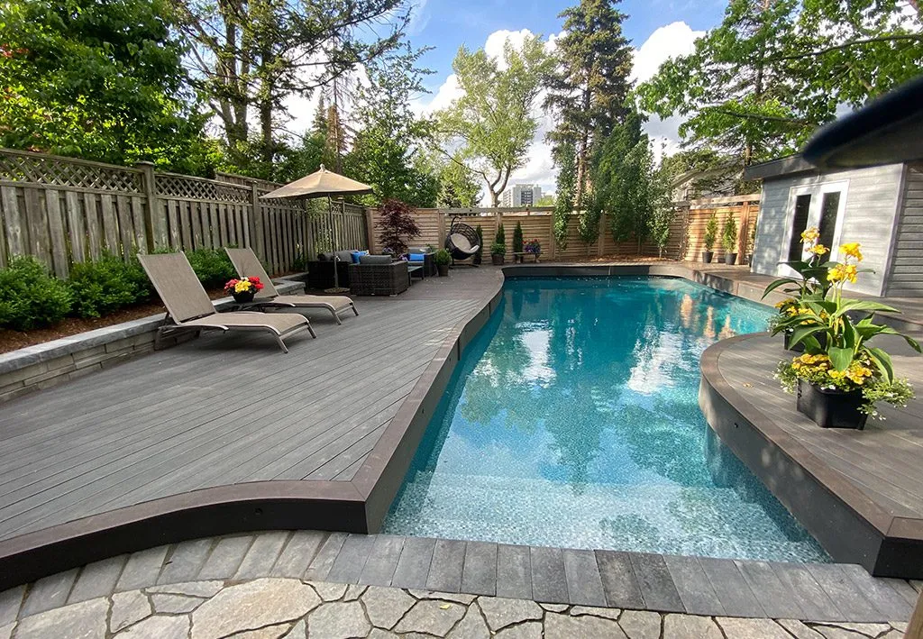 This project was all about taking an aging pool area and breathing new life into it. We started by replacing the tired old deck boards with durable, low-maintenance composite decking that brightens the space and provides long-term reliability—perfect for high-traffic, splash-heavy zones like this one. We reimagined the layout to better support how the family actually uses the area: lounging, dining, and hosting. By incorporating subtle changes in elevation and defining distinct zones, we gave the deck natural flow and structure without compromising openness. Integrated seating, thoughtful lighting, and updated railings brought it all together with a modern feel that still respects the original character of the home. We’re proud of how this transformation elevated not just the look, but the lifestyle of this backyard. It’s now a rejuvenated space ready for summer memories.
