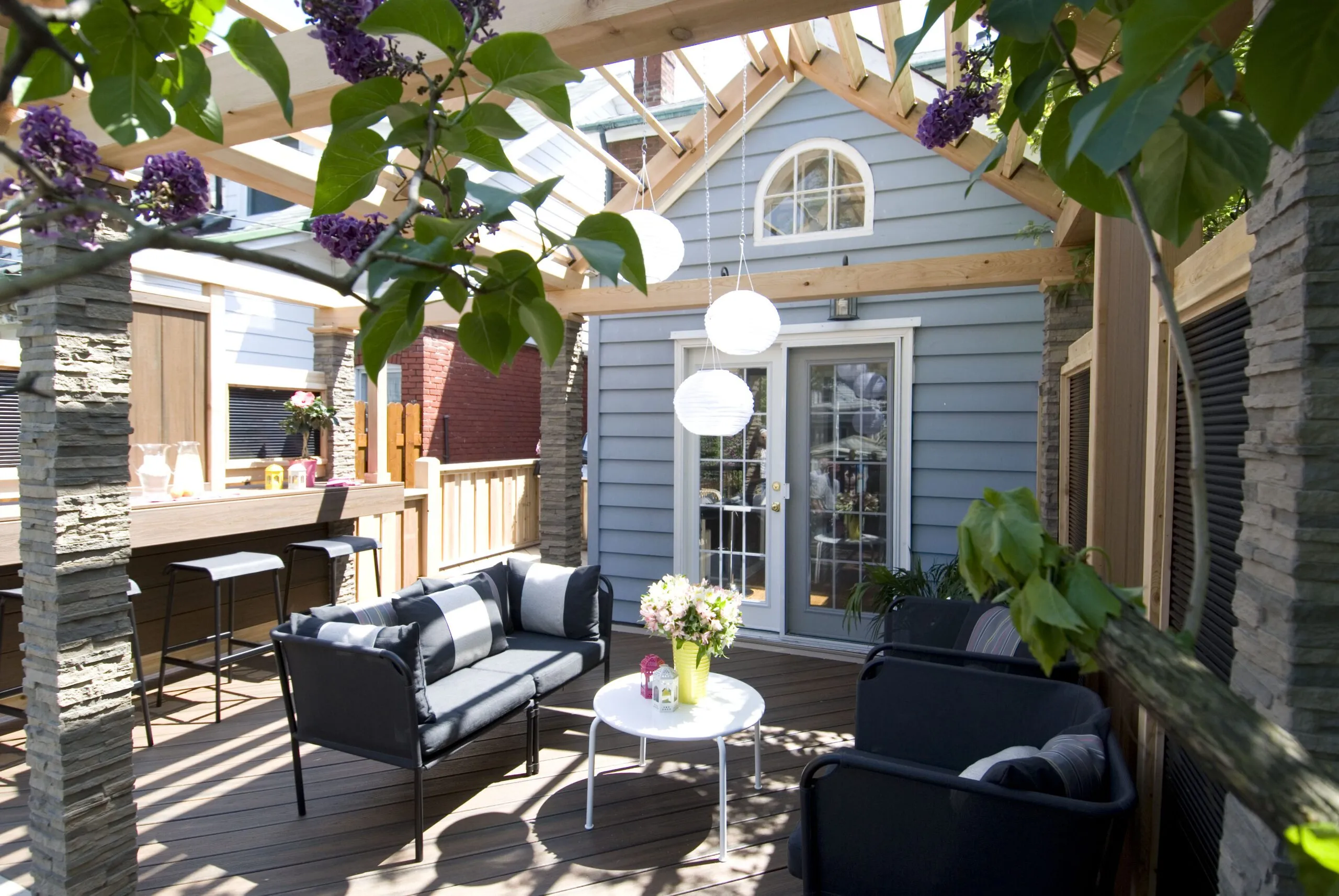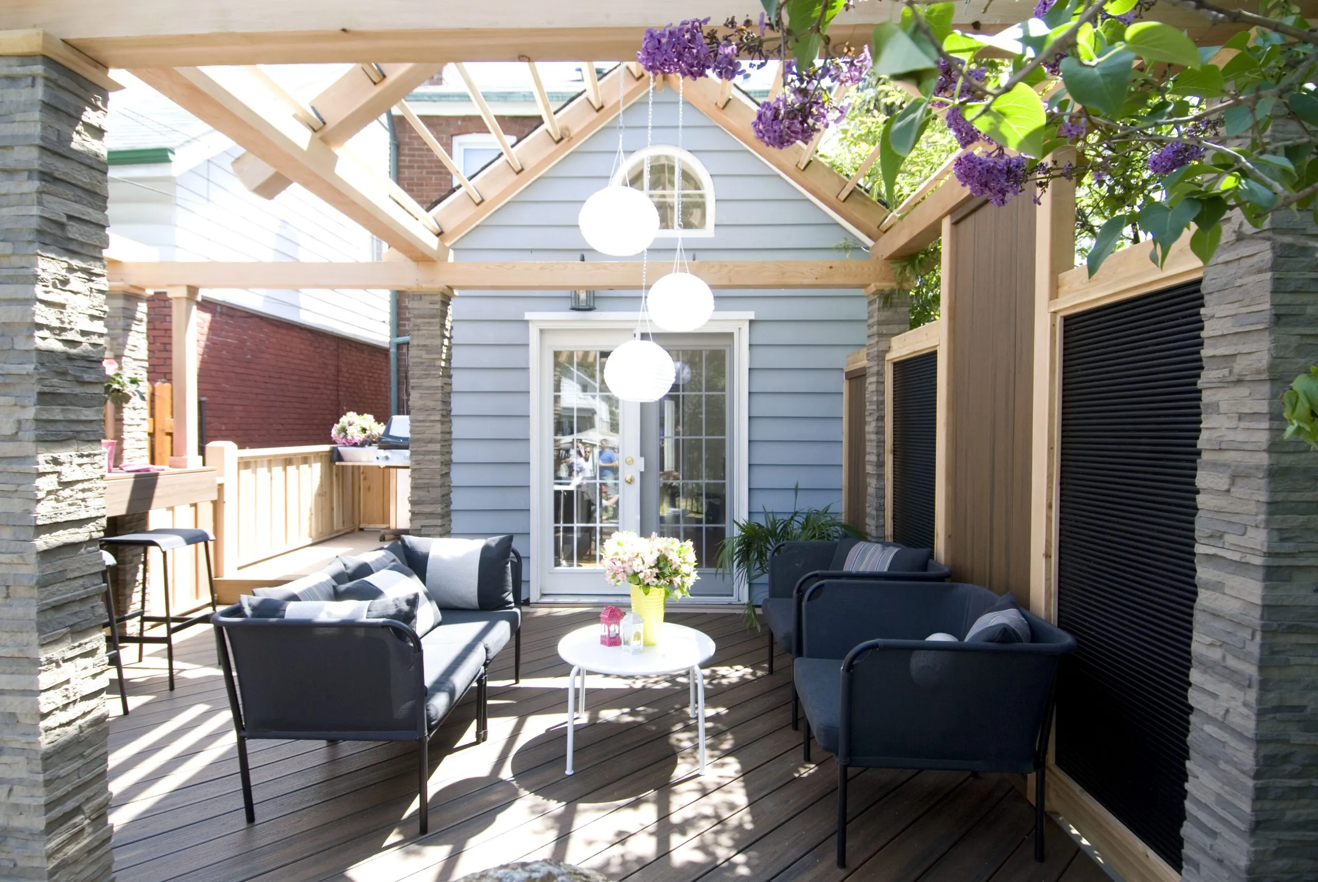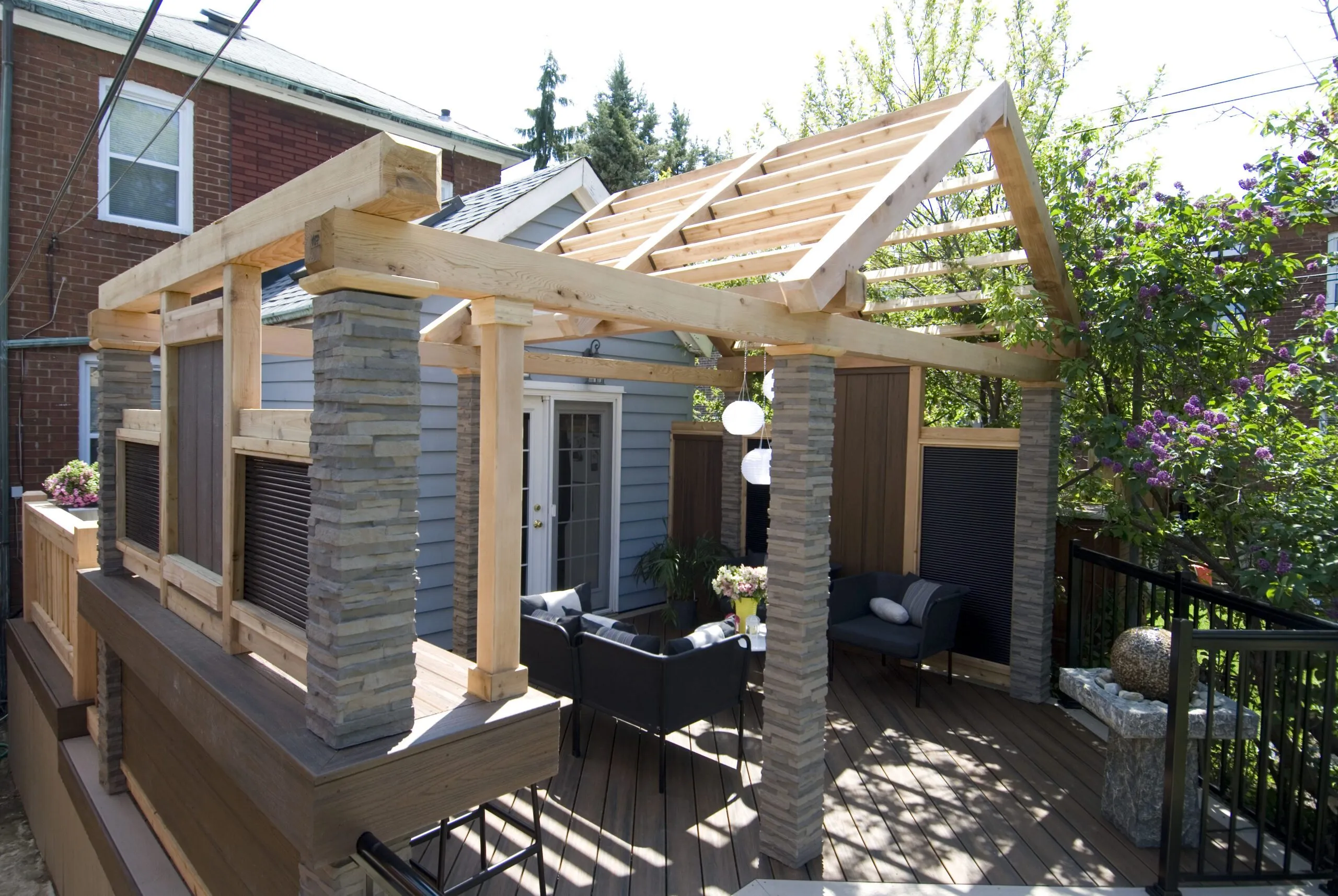 This project was all about extending the usability of outdoor space without losing the natural light. We used a see-through polycarbonate roof to keep the rain out while still letting sunlight filter in—so even on cloudy days, the deck stays bright and welcoming. We created distinct areas for lounging, dining, and entertaining, while keeping the design open and cohesive. The materials were chosen for durability and warmth, with wood finishes that bring a cozy feel to the space. Whether it’s a quiet morning coffee or a dinner with friends, this deck works year-round—and looks good doing it.