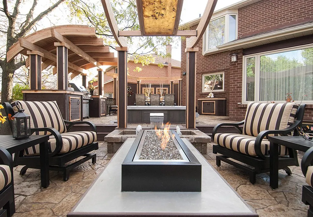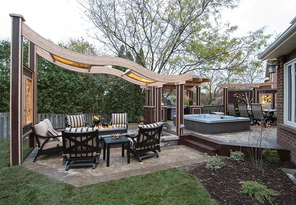 The Stone Deck was all about working with texture and weight to give the outdoor space a sense of permanence and calm. The homeowners wanted something that felt grounded—literally—so we leaned into materials like natural stone, cedar, and iron accents. We designed a raised deck area to anchor a hot tub at the heart of the layout, wrapped in custom stonework that blends seamlessly into the rest of the patio. Built-in seating lines the deck for casual lounging, while overhead, we added layered pergola structures to control light and define zones without fully enclosing the space. The entire design invites year-round use, with durable materials and strategic sightlines that preserve privacy in a suburban setting. This was one of those builds where the challenge was to make the structure feel like it had always been there—and that’s exactly what we achieved. It's a custom stone deck project where form, function, and flow all came together naturally.