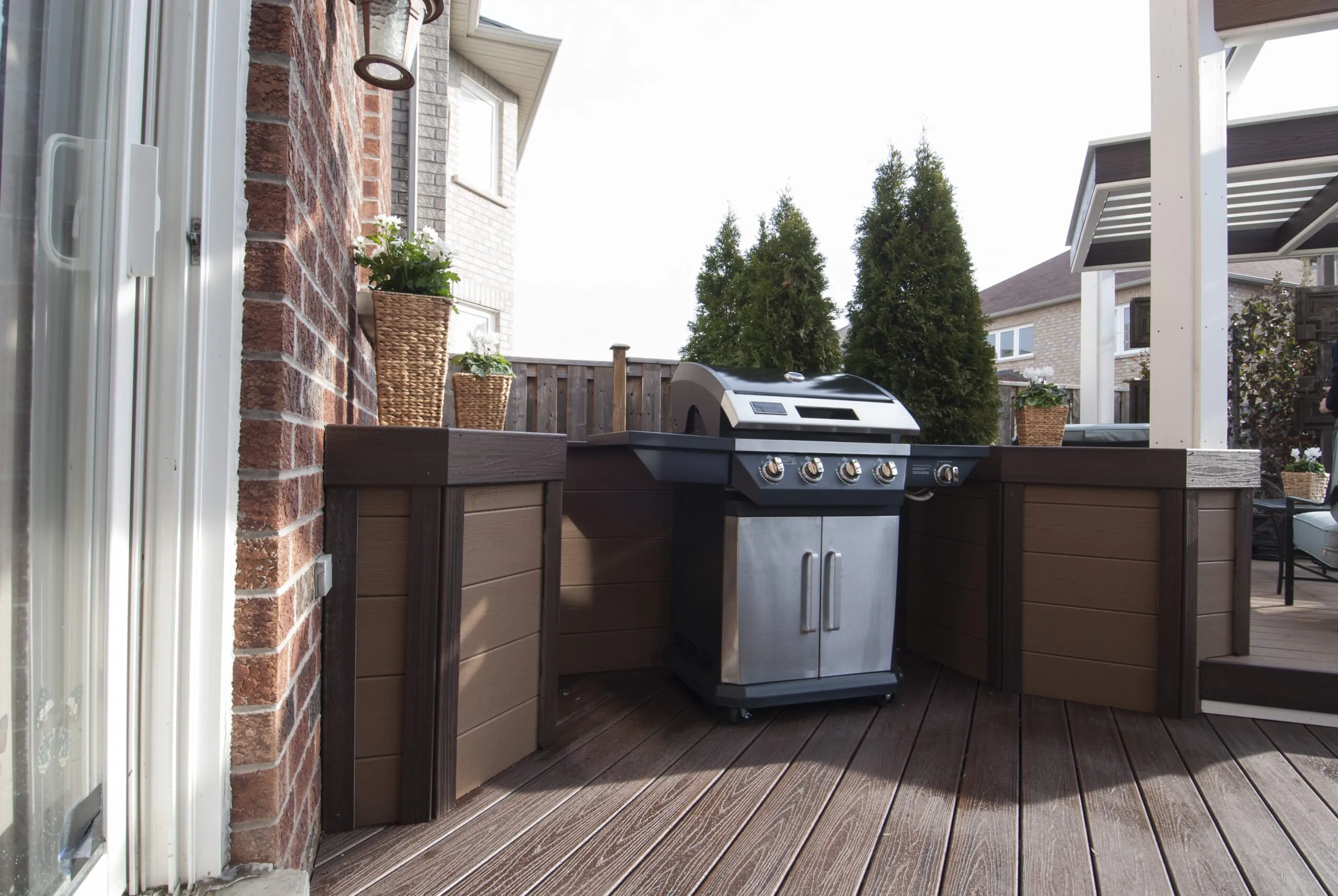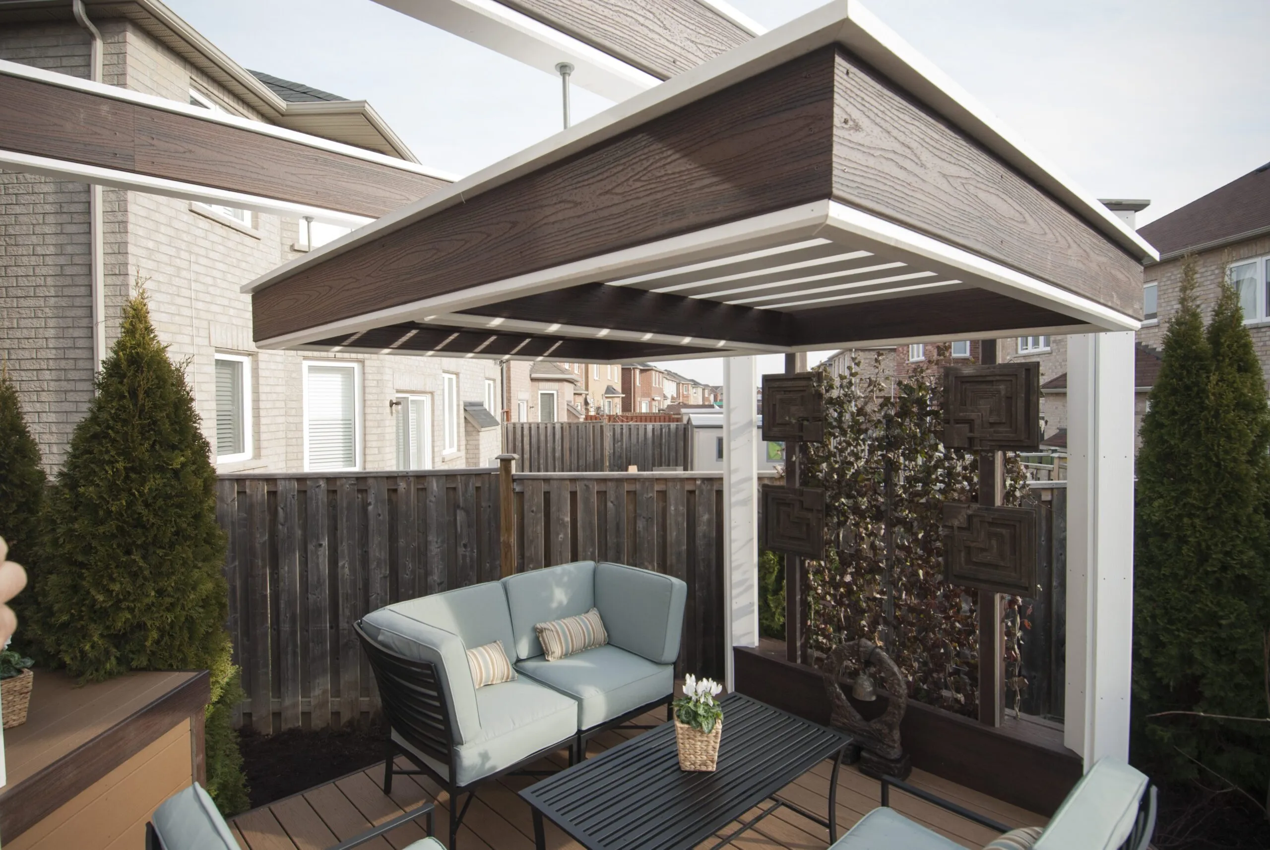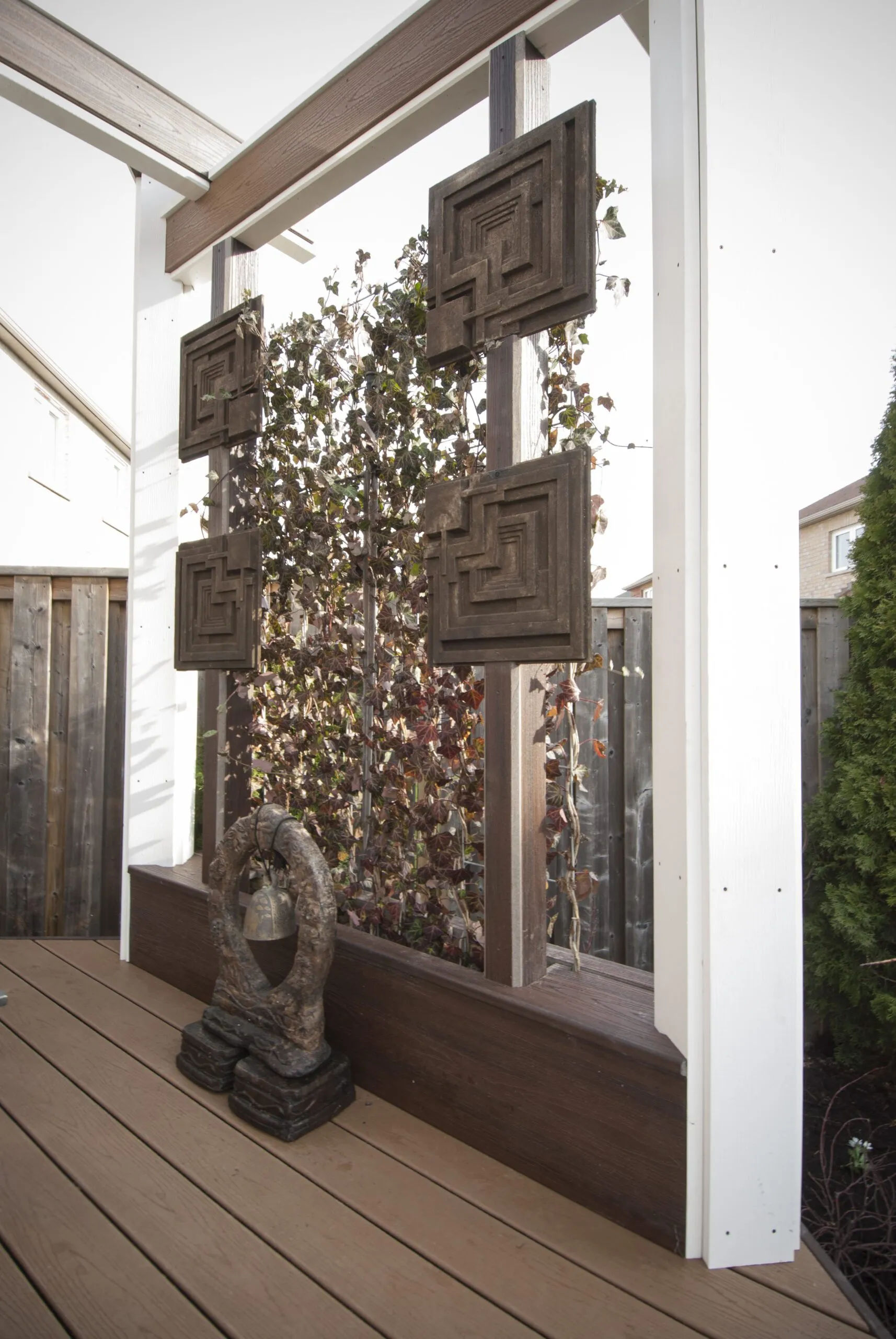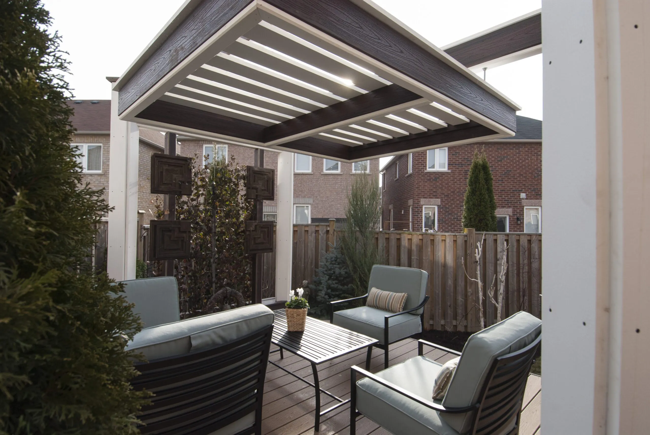 This project proves that even a small yard can become a full-featured outdoor living space. We designed this compact deck to include all the essentials—dining, lounging, privacy, and storage—without feeling crowded or overbuilt. A custom pergola defines the dining area while adding overhead protection. Built-in planters and vertical privacy panels give the space some breathing room and help block sightlines from surrounding homes. Every piece of furniture and every inch of the layout was chosen with space in mind. It’s a great example of how thoughtful design can make a tiny yard feel like a full-sized escape.