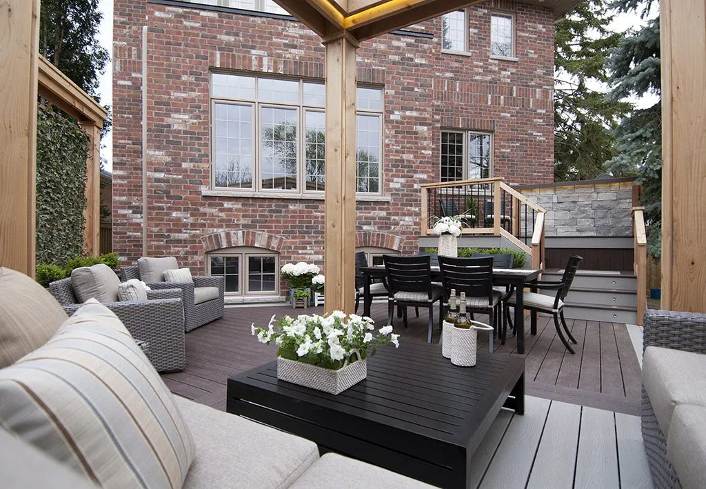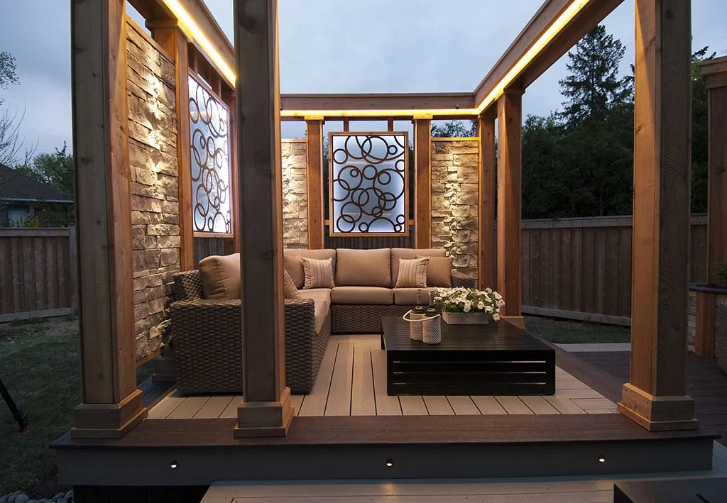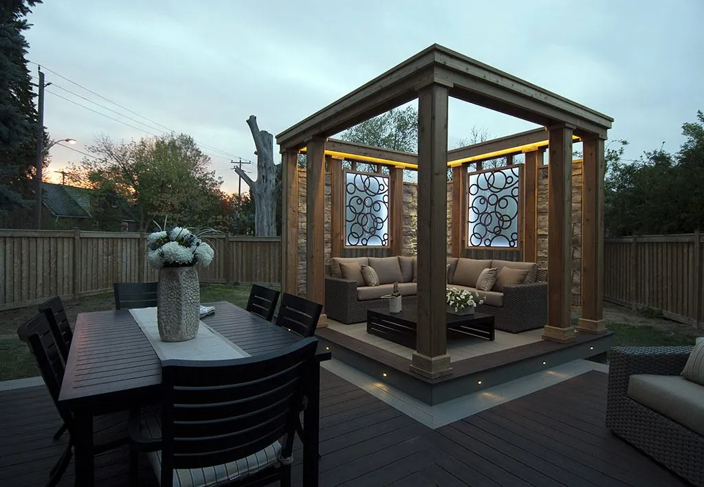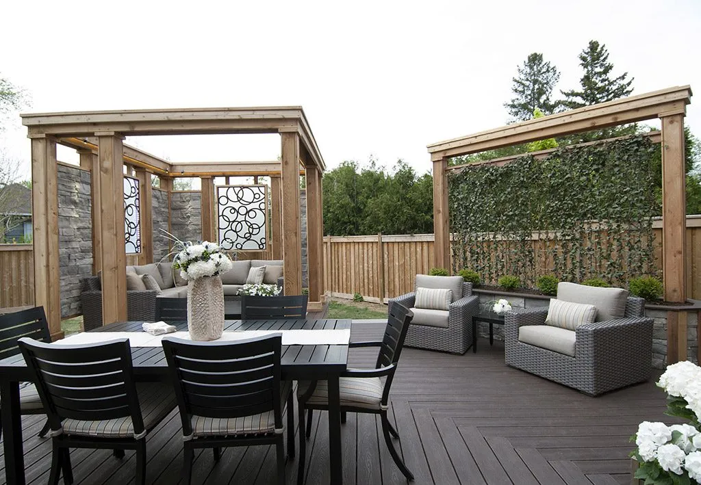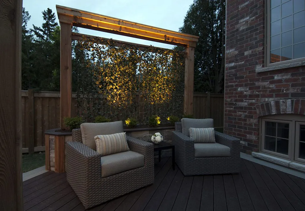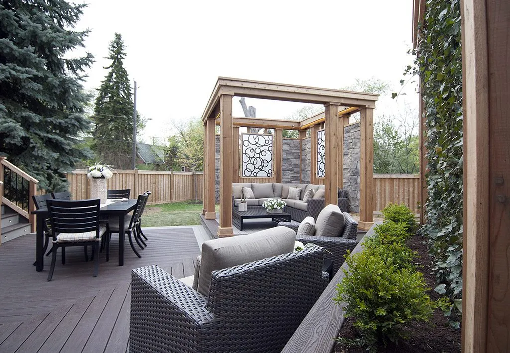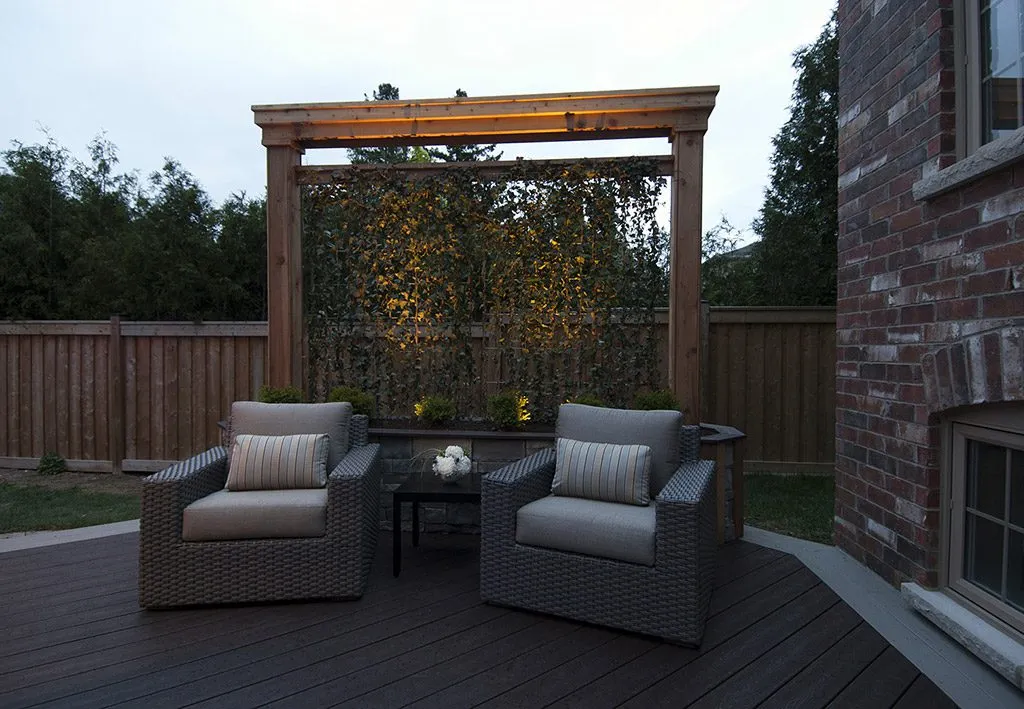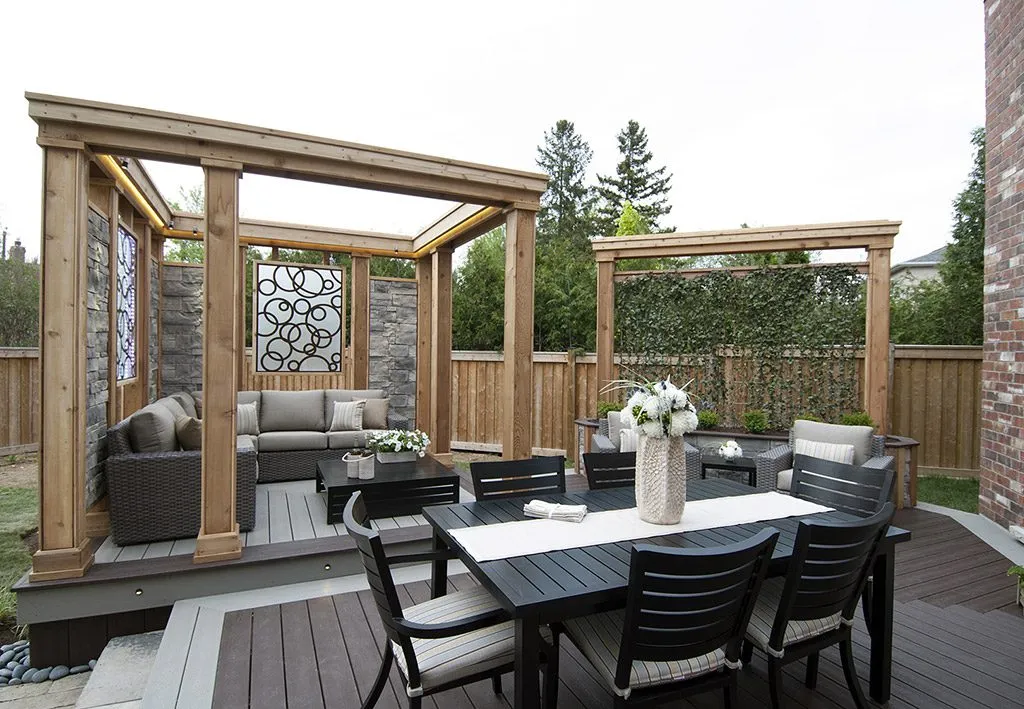 With The Triangle Deck, we tackled a common challenge: how to make an oddly shaped yard work with the geometry, not against it. The triangular pergola became the focal point, offering both a visual anchor and privacy for the seating nook. From there, we extended a composite deck that flows organically into the rest of the yard, creating distinct zones for dining, lounging, and enjoying the evening. Custom privacy screens and wood lattice were added to soften the edges and give the space a cozy, protected feel. Thoughtful lighting brings it all to life at night. This deck is a great example of how creative deck design can turn unusual yard shapes into standout outdoor living spaces.
