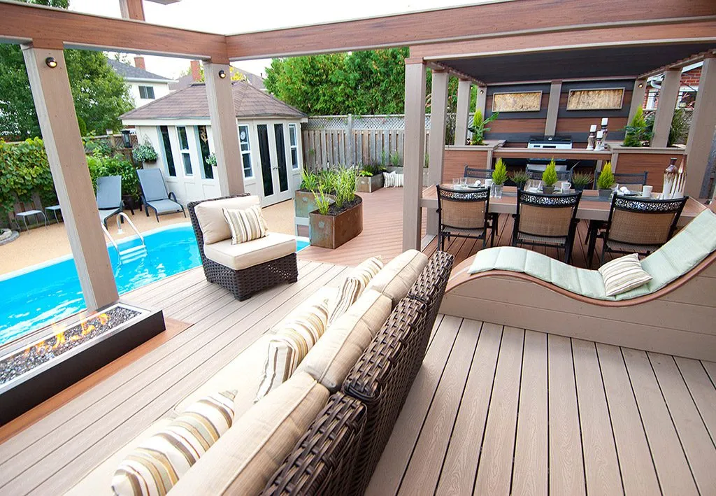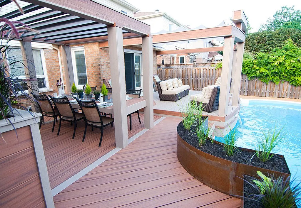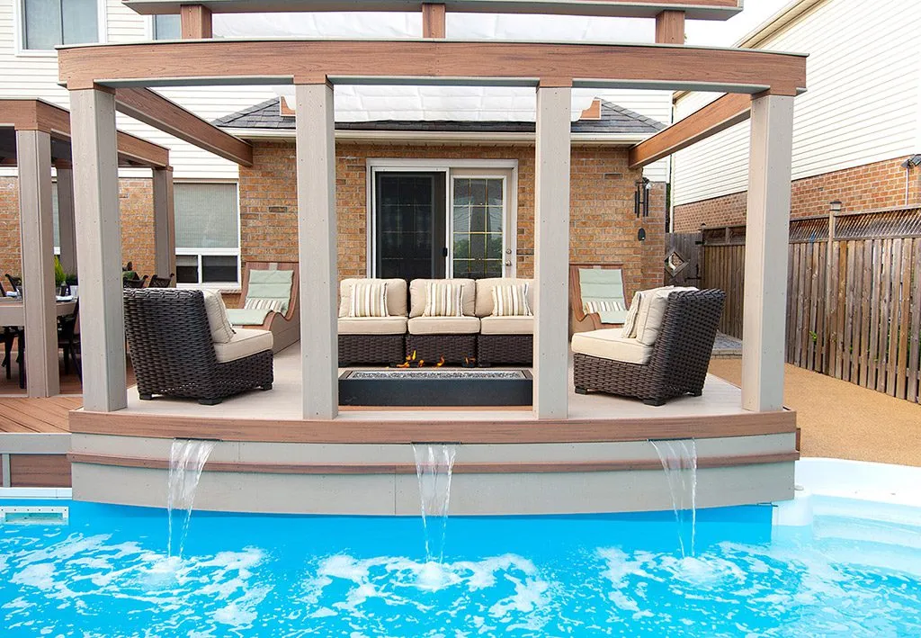 At The Waterfall Deck, we wanted to design a space that not only offers a place to relax but also creates a harmonious atmosphere through the gentle flow of water. The focal point of this project is the stunning built-in waterfall, which provides a tranquil sound while enhancing the overall aesthetic. We strategically integrated it into the deck's design to create a seamless flow between the pool, lounge areas, and dining space. The layout includes comfortable outdoor seating, with sections for both intimate relaxation and larger gatherings. We also incorporated high-end features such as a built-in barbecue and a modern bar, making it the perfect setting for entertaining guests. The combination of elegant design, premium materials, and a serene ambiance makes this deck an ideal retreat for any occasion.