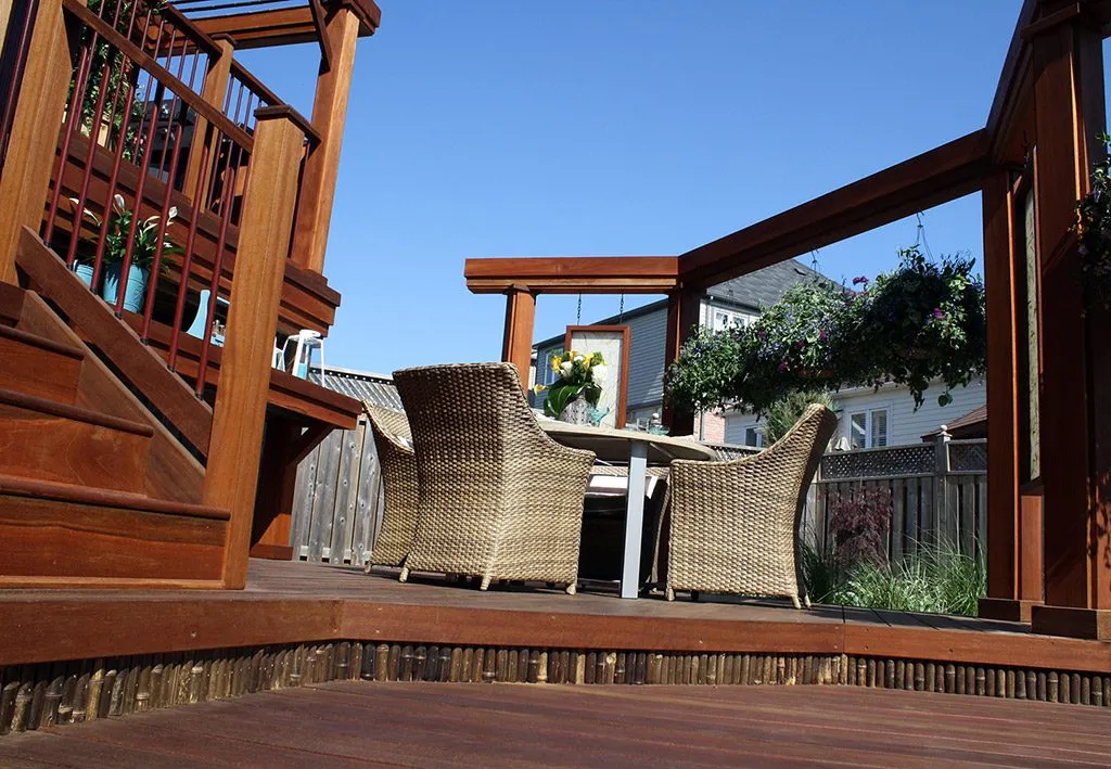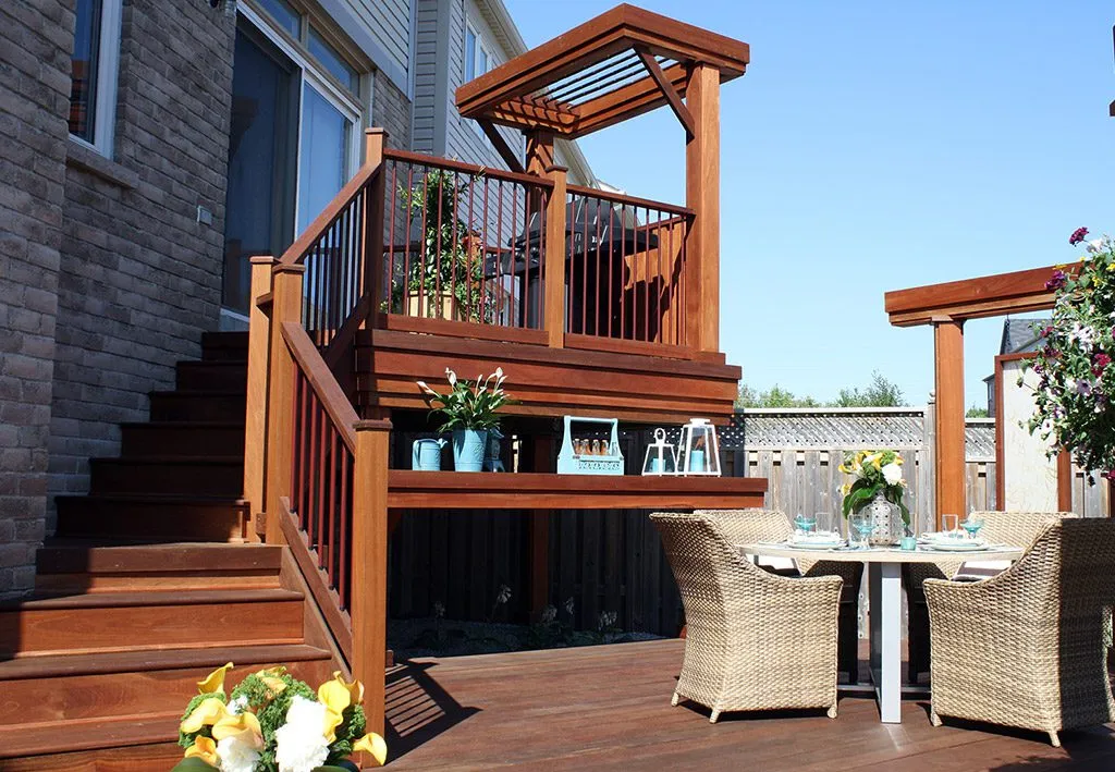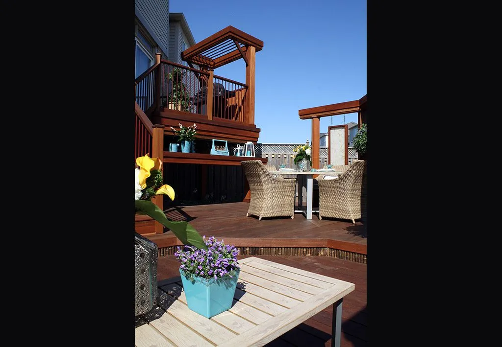 The Wedding Deck is a perfect example of what happens when design meets emotion. The homeowners came to us with a dream: to create an outdoor space that could host their wedding and then become a long-term gathering place for friends and family. We focused on layered elevation changes to create natural pathways and platforms, using warm-toned hardwoods and hand-crafted railings to define each space. A custom-built archway became the focal point—a ceremonial centerpiece that still serves as a daily reminder of that milestone moment. Integrated seating areas and planting beds soften the lines and add intimacy. From a deck-building perspective, this project had to balance beauty, durability, and flow, and the result is a handcrafted wedding deck that blends architectural precision with genuine heart. It's become more than just a backyard deck—it's a living venue for love, laughter, and celebration.