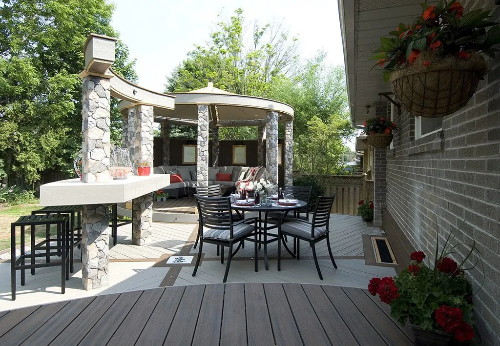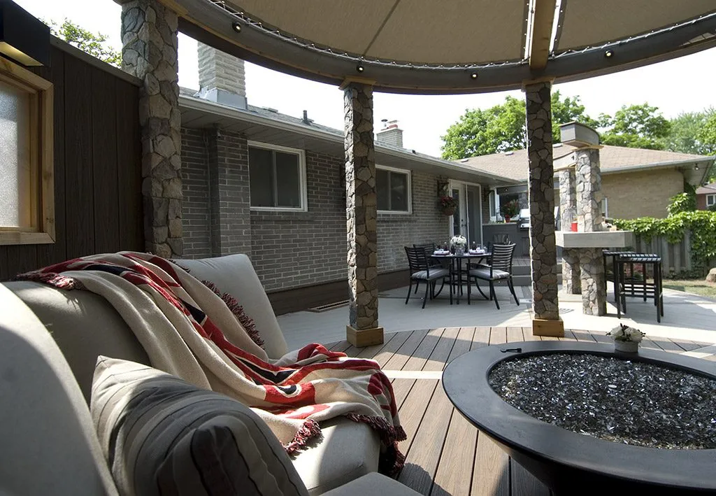 At Paul Lafrance Design, we worked closely with our clients to create "The West Coast Deck," a unique outdoor living area that seamlessly blends relaxation and entertainment. The design focuses on providing a tranquil, inviting space, complete with comfortable seating, a cozy stone fireplace, and carefully chosen landscaping that enhances the overall aesthetic. The deck's clean lines and use of durable materials give it a timeless, elegant feel, while the covered sections ensure comfort in various weather conditions. Our team took great care in ensuring the layout maximized functionality, ensuring easy flow between areas for both lounging and hosting. From the thoughtful integration of natural stone accents to the inviting seating arrangements, this project truly exemplifies our commitment to combining beauty with practicality in every outdoor space.