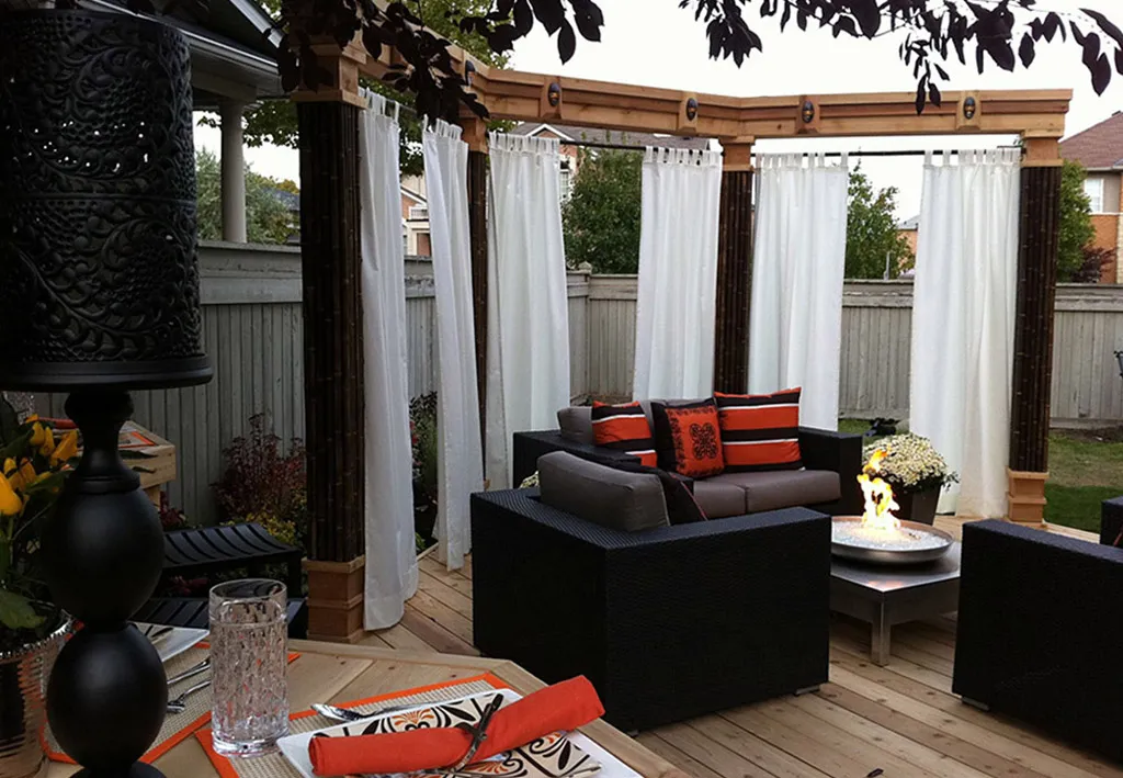 A spacious backyard deck designed around outdoor dining, lounging, and poolside relaxation. Features include a built-in grill station, custom pergola, and integrated landscaping.