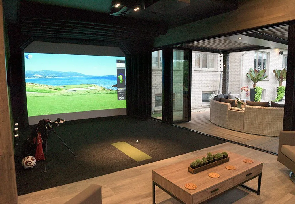 A bold transformation that reimagines backyard living as an immersive lifestyle experience. This project features a putting green, hot tub, outdoor kitchen, indoor golf simulator, and custom entertainment lounge.