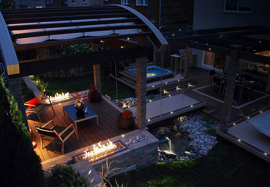 From dramatic uplighting to subtle pathway lights, we design outdoor lighting that extends your space long after sunset.